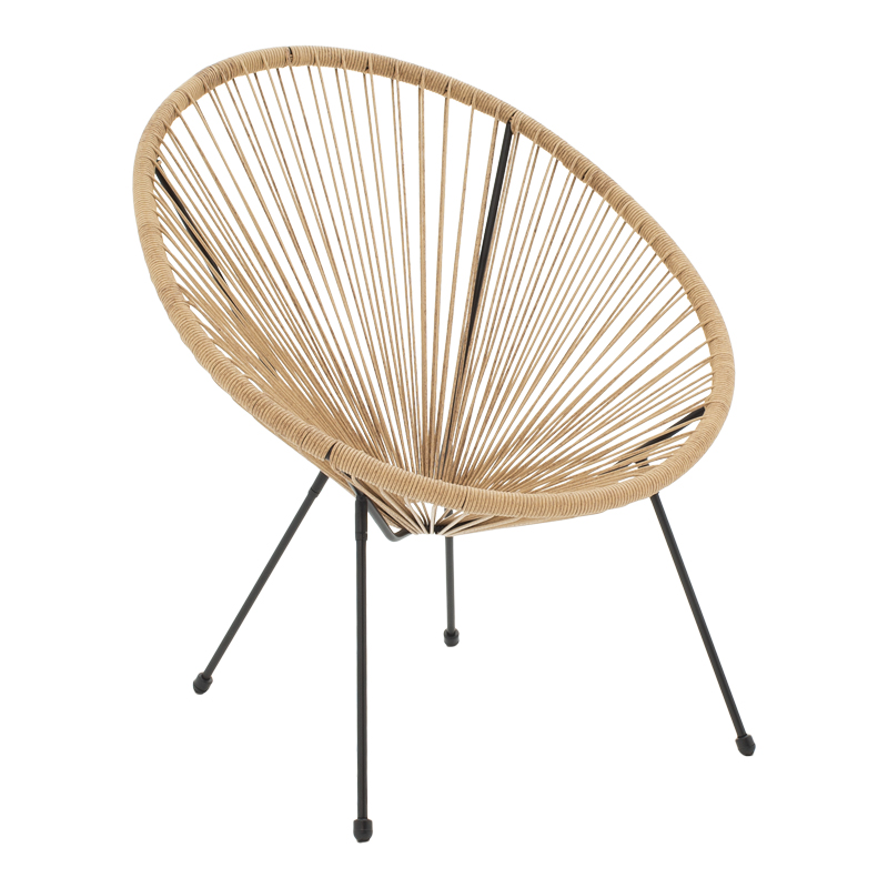 Πολυθρόνα Acapulco μεταλλο σε μαύρη-pe rattan σε φυσική απόχρωση 68.5×74.5×84εκ