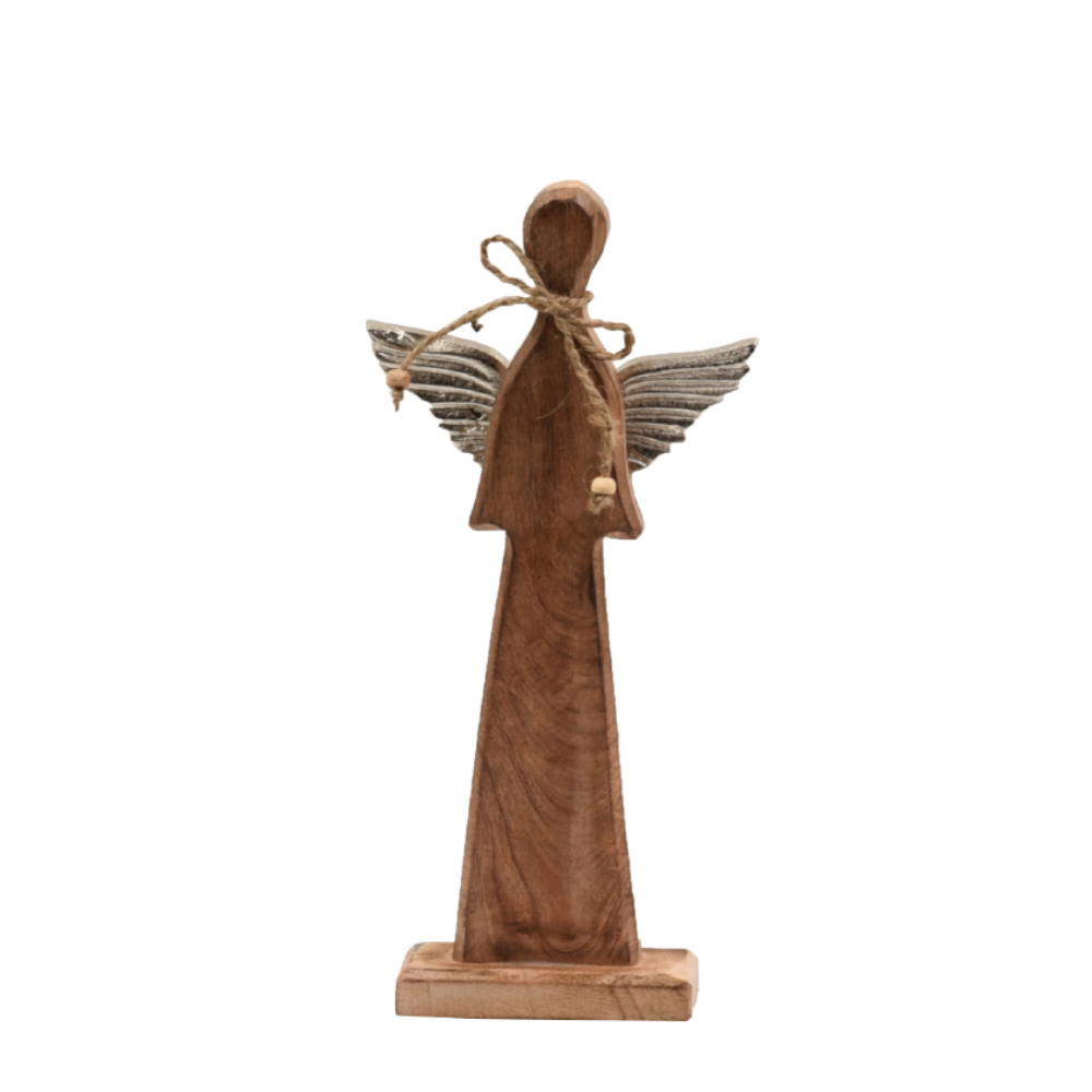 ANGI ΧΡΙΣΤΟΥΓΕΝΝΙΑΤΙΚΟ ΔΙΑΚΟΣΜΗΤΙΚΟ ΑΓΓΕΛΟΣ ΜΕ ΦΤΕΡΑ 28x7x38cm ΞΥΛΟ MANGO ΦΥΣΙΚΟ ΑΣΗΜΙ ΑΛΟΥΜΙΝΙΟ