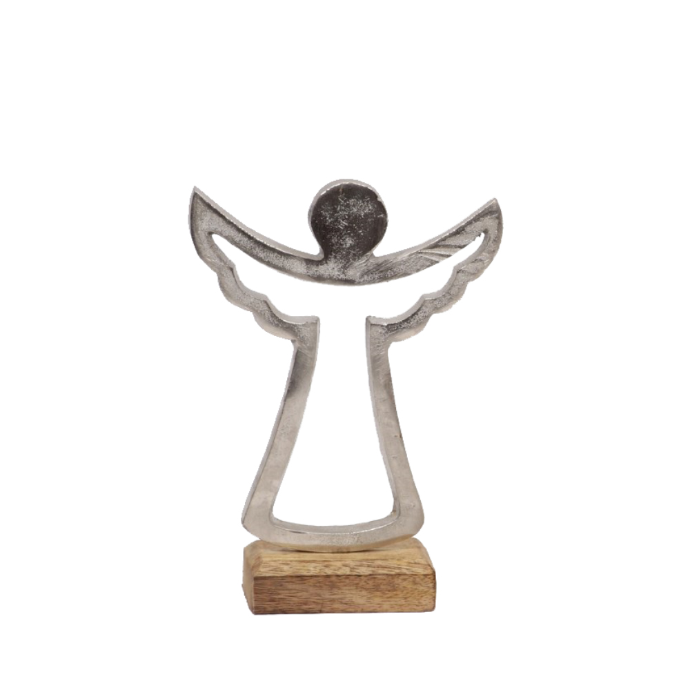 BETH ΧΡΙΣΤΟΥΓΕΝΝΙΑΤΙΚΟ ΔΙΑΚΟΣΜΗΤΙΚΟ ΑΓΓΕΛΟΣ 10x6x13cm ΑΛΟΥΜΙΝΙΟ ΑΣΗΜΙ ΦΥΣΙΚΟ ΞΥΛΟ MANGO