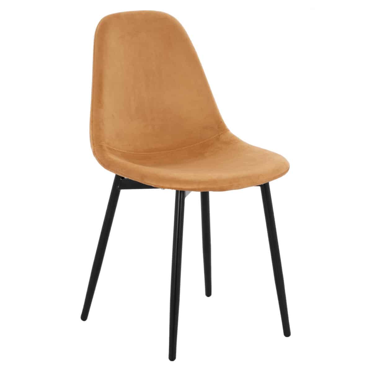 Καρέκλα Masebo μπουκλέ ύφασμα σε λαδί απόχρωση με μαύρα μεταλλικά πόδια 48×58.5×82εκ