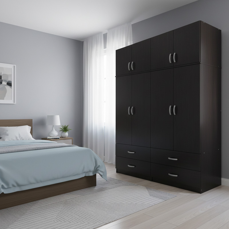 Ντουλάπα τετράφυλλη Royal με συρτάρια wenge 200x58x177εκ