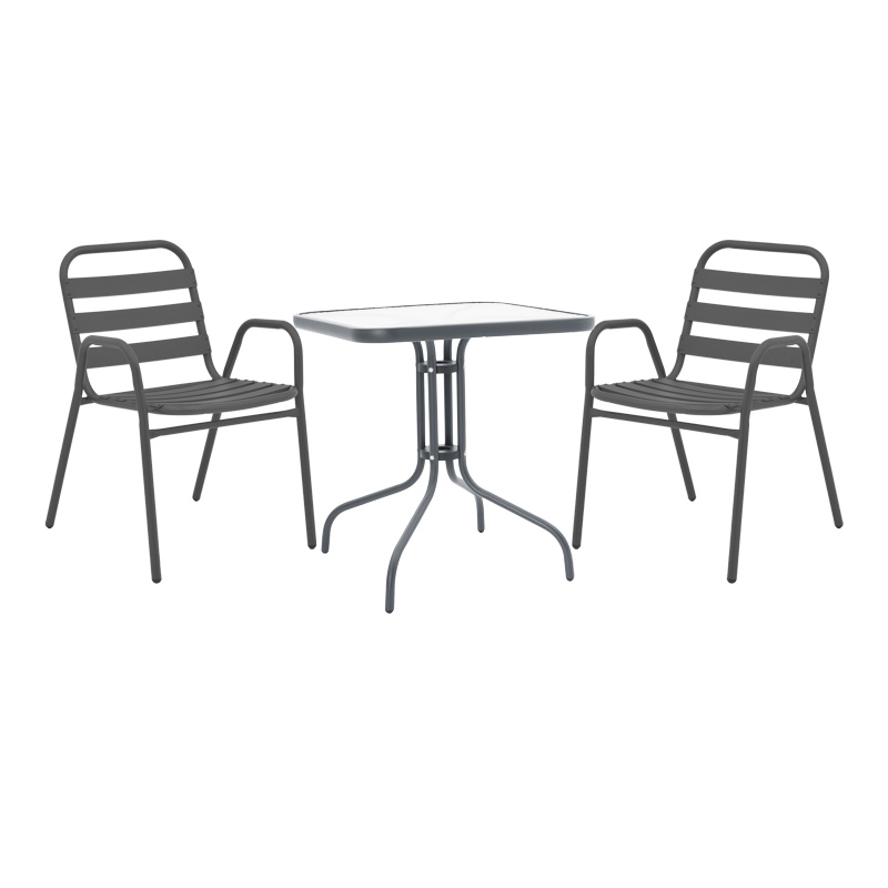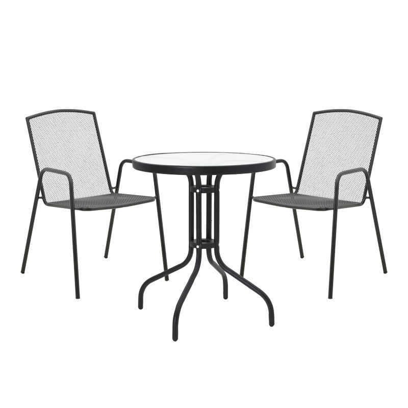 Τραπεζαρία Watson-Confidence σετ 3τεμ μέταλλο σε ανθρακί απόχρωση 70x70x70εκ