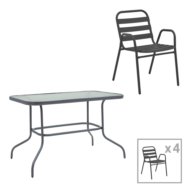 Τραπεζαρία Uplift-Kliton σετ 5τεμ ανθρακί αλουμίνιο και plywood σε γκρι απόχρωση 80x80x74εκ