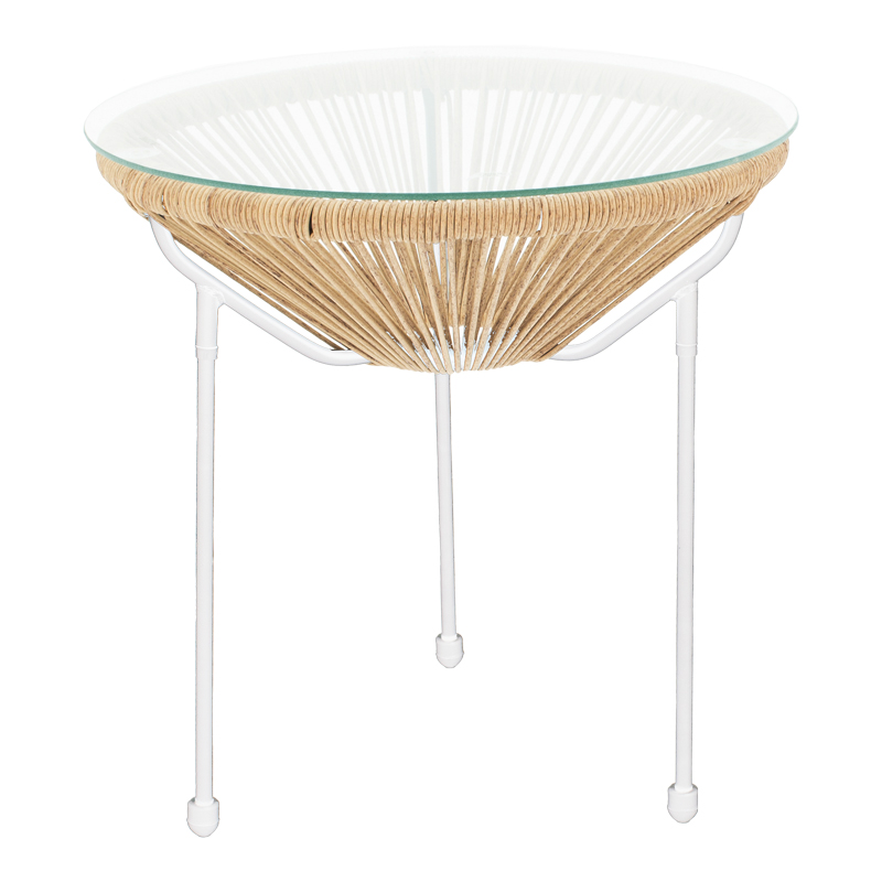 Τραπέζι Acapulco μεταλλο σε λευκή-pe rattan σε φυσική απόχρωση Φ50×52εκ