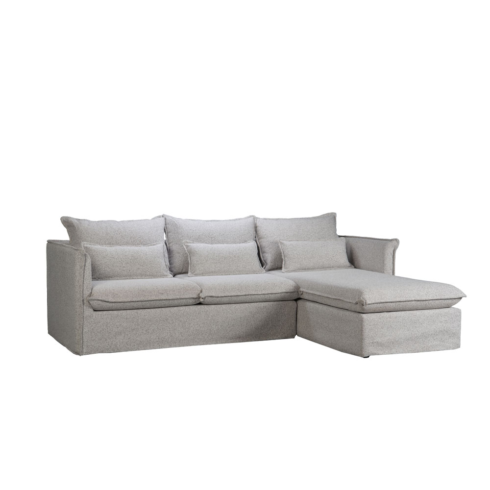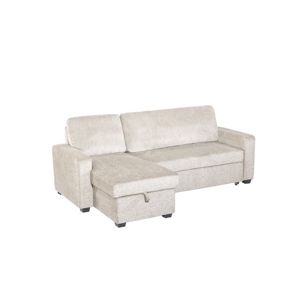 Γωνιακός αναστρέψιμος καναπές κρεβάτι Kamore με αποθηκευτικό χώρο μπεζ ύφασμα 223x146x85εκ