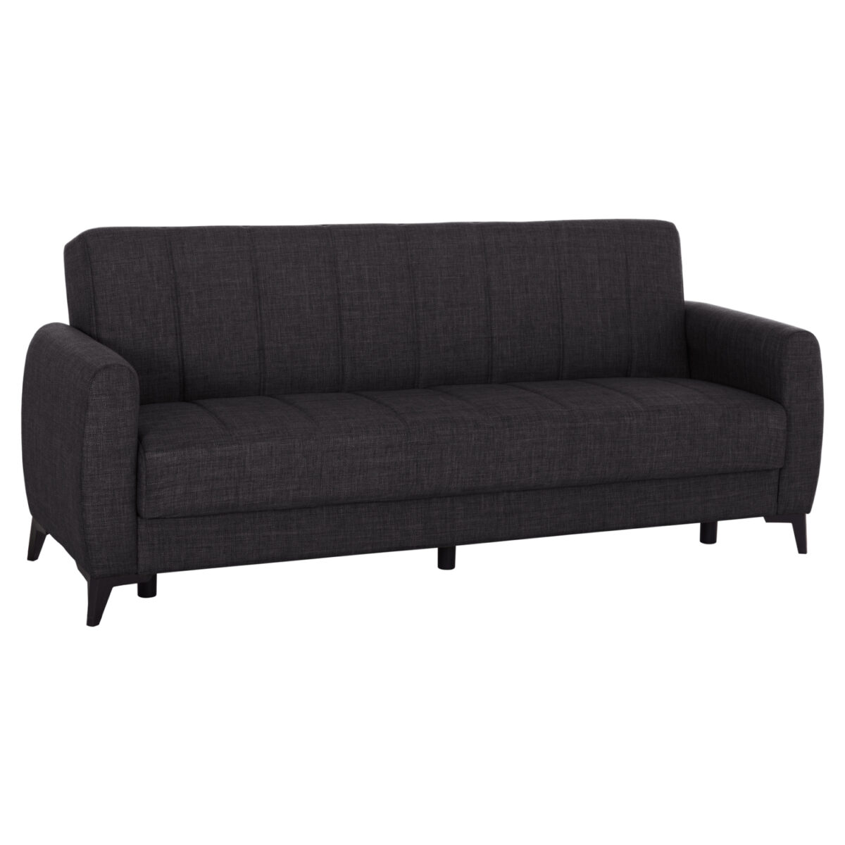 Καναπές-κρεβάτι με αποθηκευτικό χώρο τριθέσιος Romina ανθρακί ύφασμα 190x75x85εκ