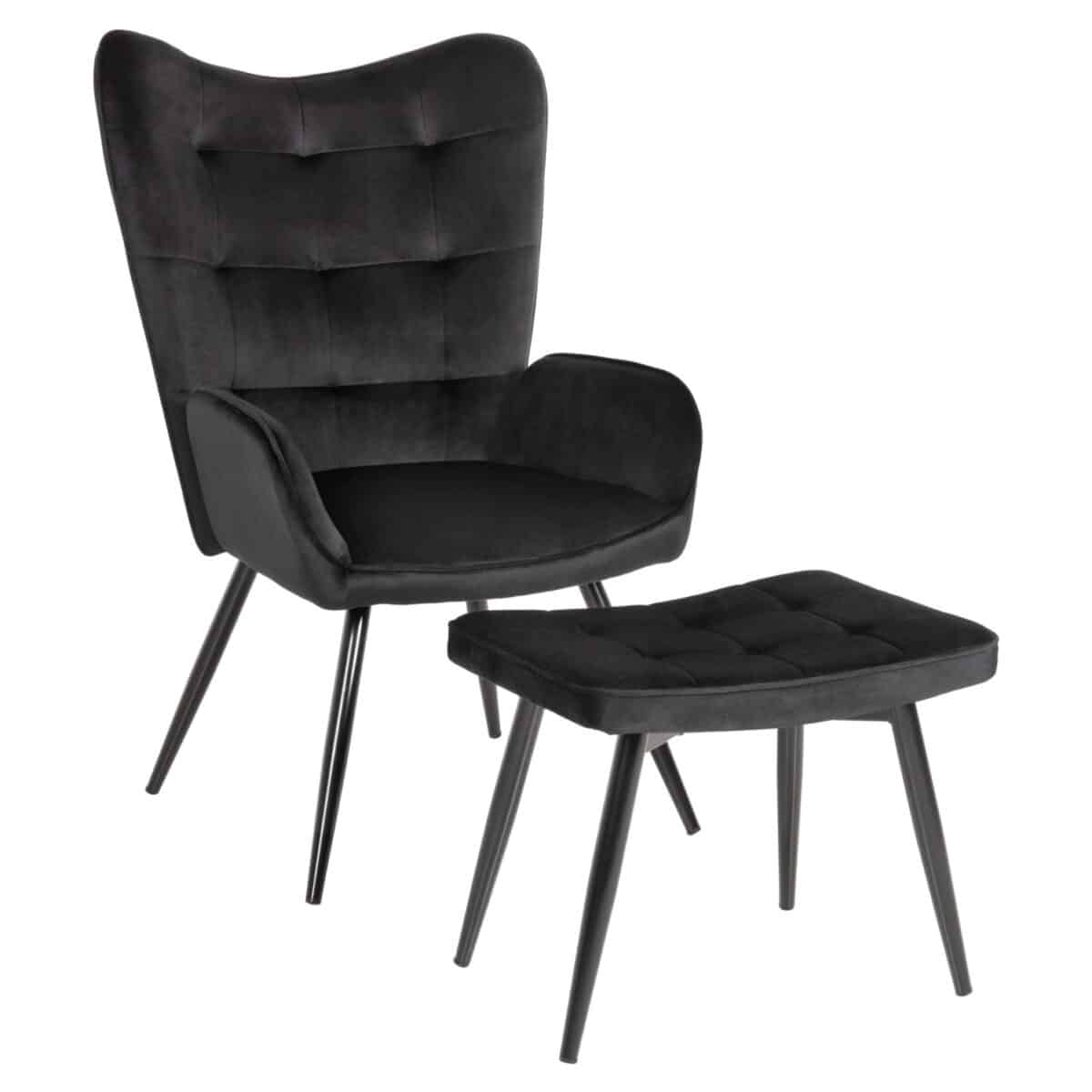 Πολυθρόνα με υποπόδιο Dorita βελούδο μαύρο-πόδι μαύρο μέταλλο 68.5x76x103εκ