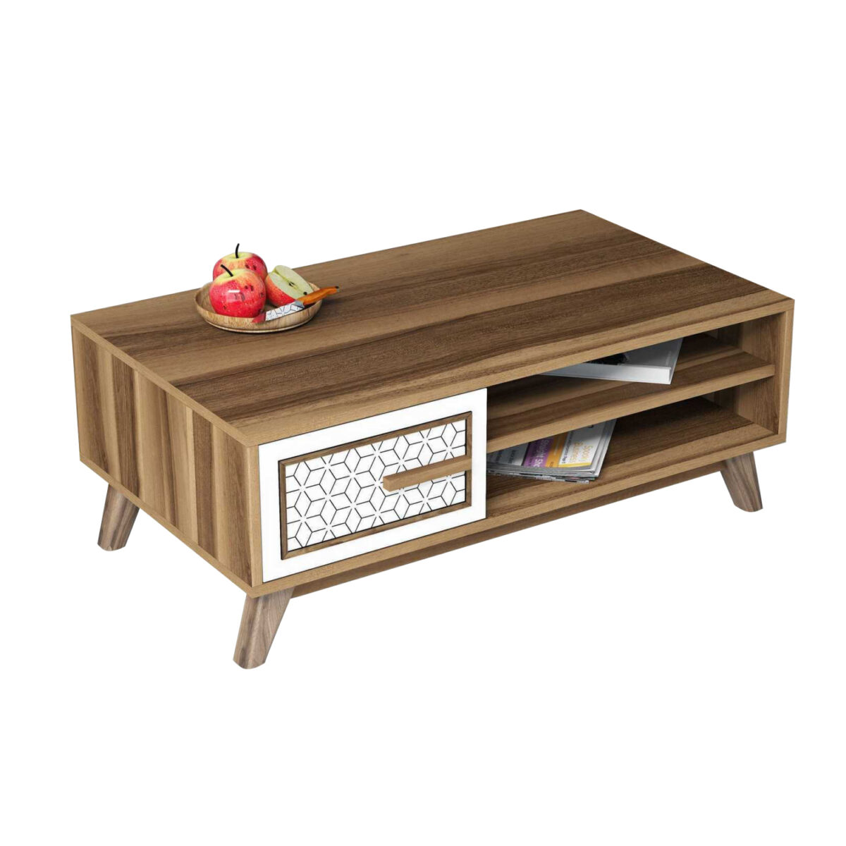 Τραπέζι σαλονιού Barton επιφάνεια σε φυσική απόχρωση με καρυδί πόδι 90x45x40εκ