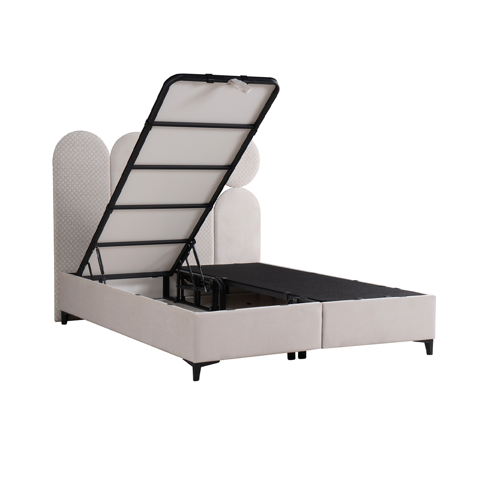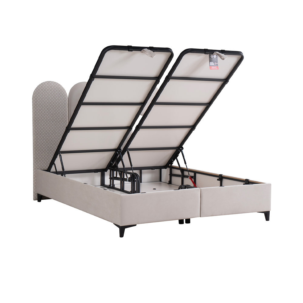 Κρεβάτι με αποθηκευτικό χώρο! Διαθέτει αεριζόμενο, αντιμικροβιακό, ευρύχωρο αποθηκευτικό χώρο και 4 αμορτισέρ ασφαλείας διπλής ενέργειας, που ανασηκώνουν εύκολα το στρώμα. Ειδική σχεδίαση και κατασκευή του κρεβατιού για απόλυτη απουσία τριγμών. Μεταλλικός σκελετός ηλεκτροστατικής βαφής, εξαιρετικής αντοχής, αντικραδασμικός. Πλαϊνά από οικολογική μελαμίνη, επενδυμένα με αφρώδες υλικό και ύφασμα . Απόλυτα επίπεδη και ενιαία επιφάνεια, ιδανική για κάθε τύπο στρώματος .Η επιφάνεια του υποστρώματος είναι καλυμμένη με αντιολισθητικό ύφασμα για την καλύτερη συγκράτηση του στρώματος. Ο πάτος είναι από μελαμίνη πάχους 8mm και φέρει αεραγωγούς. Ψηλά ποδαράκια για εύκολο καθάρισμα.