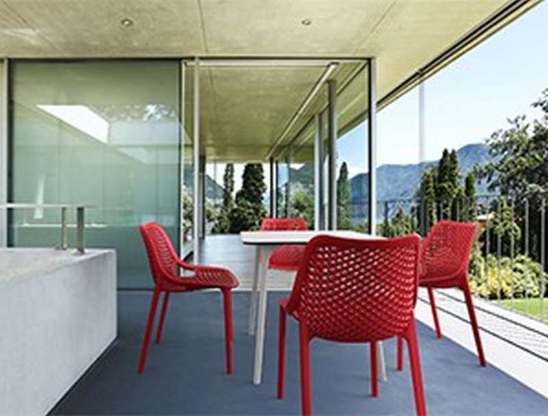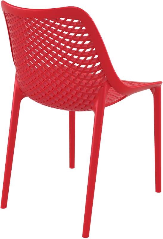 Καρέκλα AIR του οίκου Siesta σε κόκκινο χρώμα, σε μοντέρνα γραμμή με ιδιαίτερο design. Κατασκευασμένη από πολυπροπυλένιο με 20% fiber glass για απόλυτη αντοχή στο χρόνο. Κατάλληλη για εσωτερική και εξωτερική χρήση, στοιβαζόμενη, σε πολλά χρώματα, ιδανική επιλογή και για επαγγελματικούς χώρους. Πιστοποιημένο προϊόν από τον Ιταλικό οίκο CATAS.