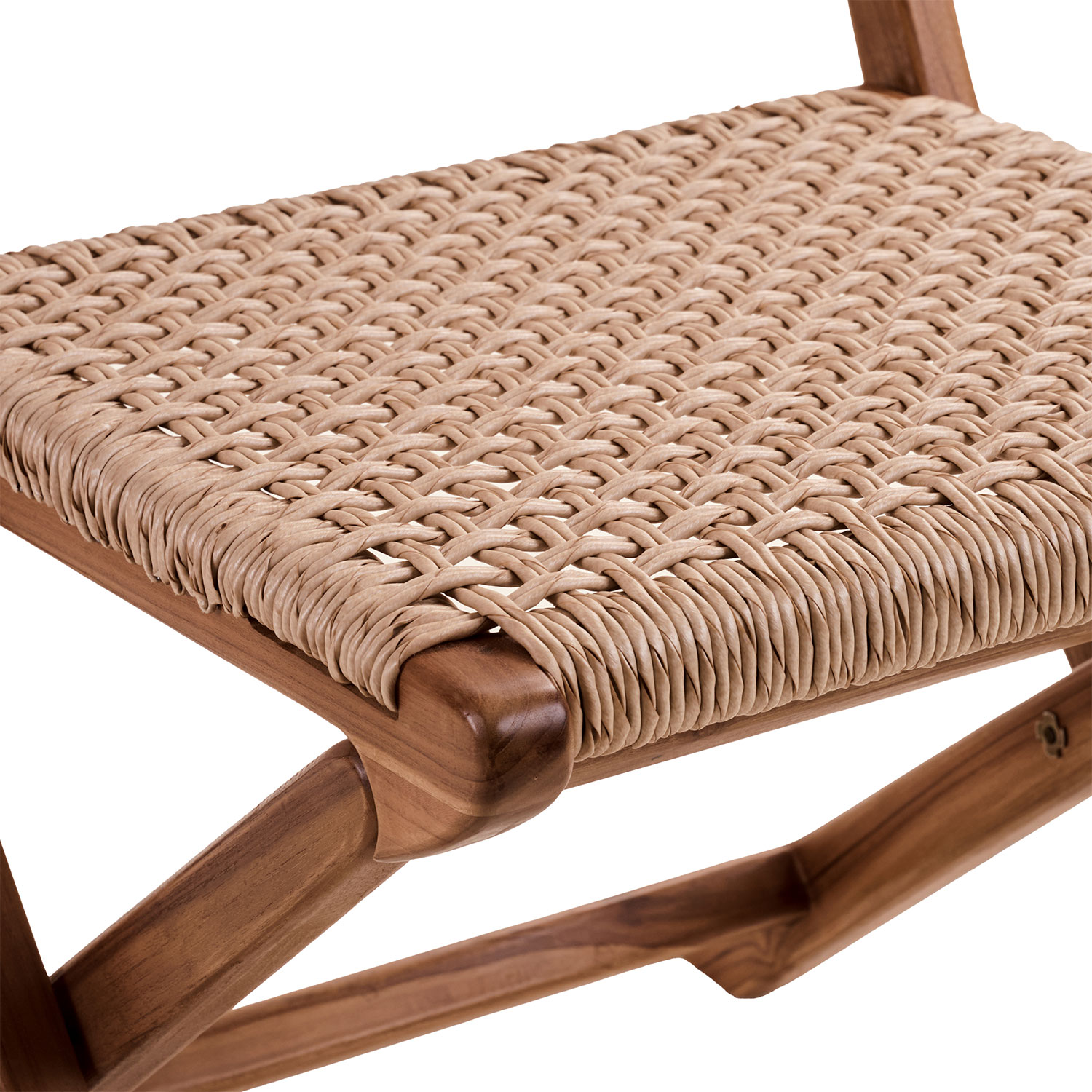Η κομψή και πρακτική αναδιπλούμενη καρέκλα GORDON συνδυάζει τη ζεστασιά του φυσικού ξύλου με ένα μοναδικό, αισθητικά ευχάριστο κάθισμα και πλάτη από πλεκτό σχοινί. Ο έξυπνος, αναδιπλούμενος σχεδιασμός επιτρέπει την γρήγορη και εύκολη δίπλωση της καρέκλας, εξοικονομώντας χώρο όταν δεν χρησιμοποιείται. Χάρη στην φορητότητα και τον κομψό σχεδιασμό της, μπορεί να χρησιμοποιηθεί σε βεράντες, κήπους, δίπλα στην πισίνα, στο κάμπινγκ, ή ακόμα και ως πρόσθετο κάθισμα σε εσωτερικούς χώρους. Ιδανική για όσους αναζητούν μια διαχρονική, χαλαρωτική και εύχρηστη λύση καθίσματος.