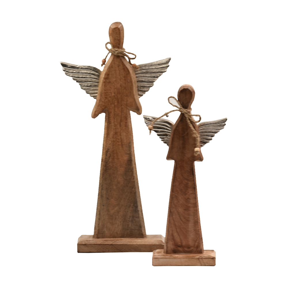 ANJO ΧΡΙΣΤΟΥΓΕΝΝΙΑΤΙΚΟ ΔΙΑΚΟΣΜΗΤΙΚΟ ΑΓΓΕΛΟΣ ΜΕ ΦΤΕΡΑ 21x6x43cm ΞΥΛΟ MANGO ΦΥΣΙΚΟ ΑΣΗΜΙ ΑΛΟΥΜΙΝΙΟ