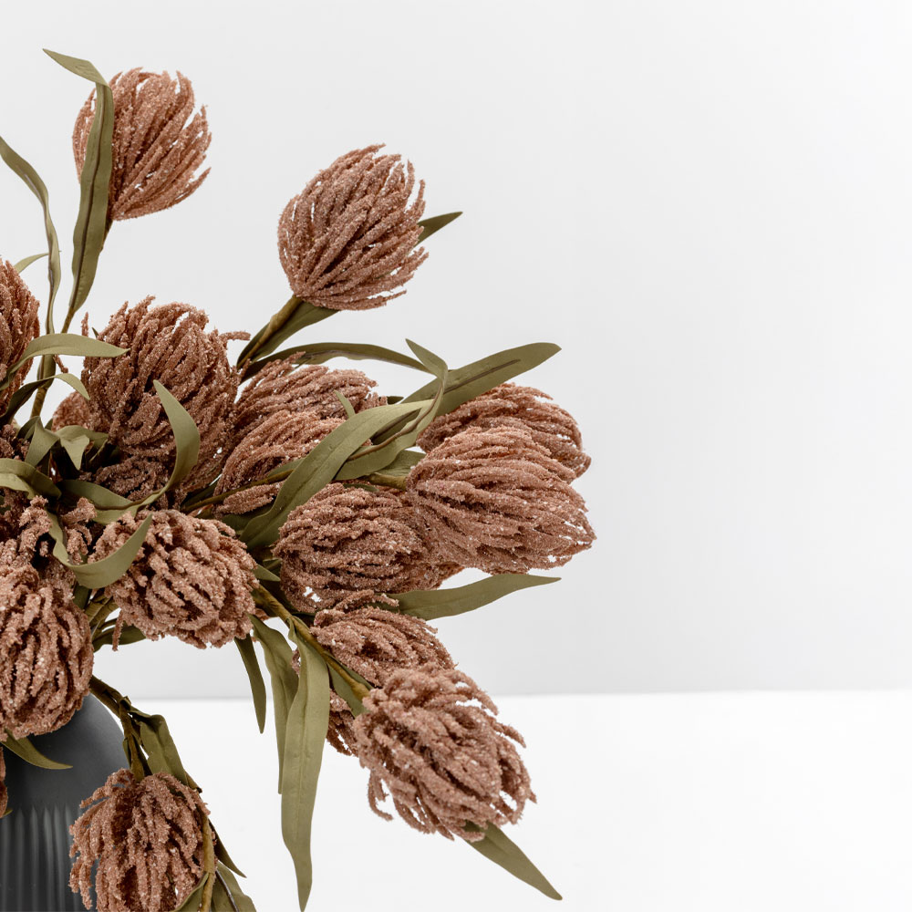 Το AROMA BLISS λουλούδι τεχνητής διακόσμησης, με ροζ άνθος από foam και πράσινα φύλλα από PVC, προσδίδει φυσική κομψότητα και ζεστασιά στον χώρο σας. Με ύψος 65cm, αποτελεί ιδανική επιλογή για σύνθεση σε βάζο ή διακοσμητικές ανθοδέσμες που διαρκούν.