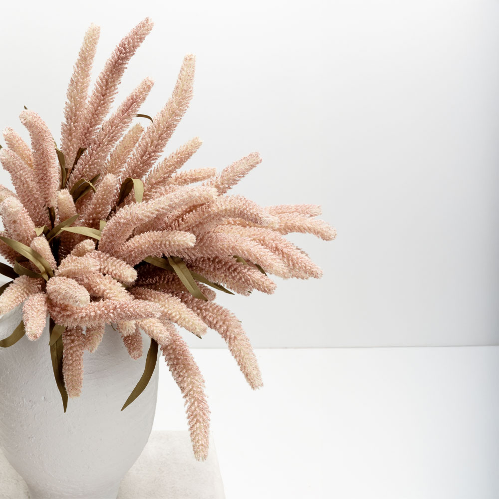 Εντυπωσιακό τεχνητό λουλούδι από τη συλλογή AROMA BLISS, με ψηλό, κομψό σχήμα και λεπτεπίλεπες ροζ ανθοκεφαλές. Κατασκευασμένο από foam και PVC, συνδυάζει φυσική υφή και διαχρονική αισθητική. Ιδανικό για να δημιουργήσει ύψος και ενδιαφέρον σε ανθοσυνθέσεις ή ως μεμονωμένο διακοσμητικό στοιχείο.