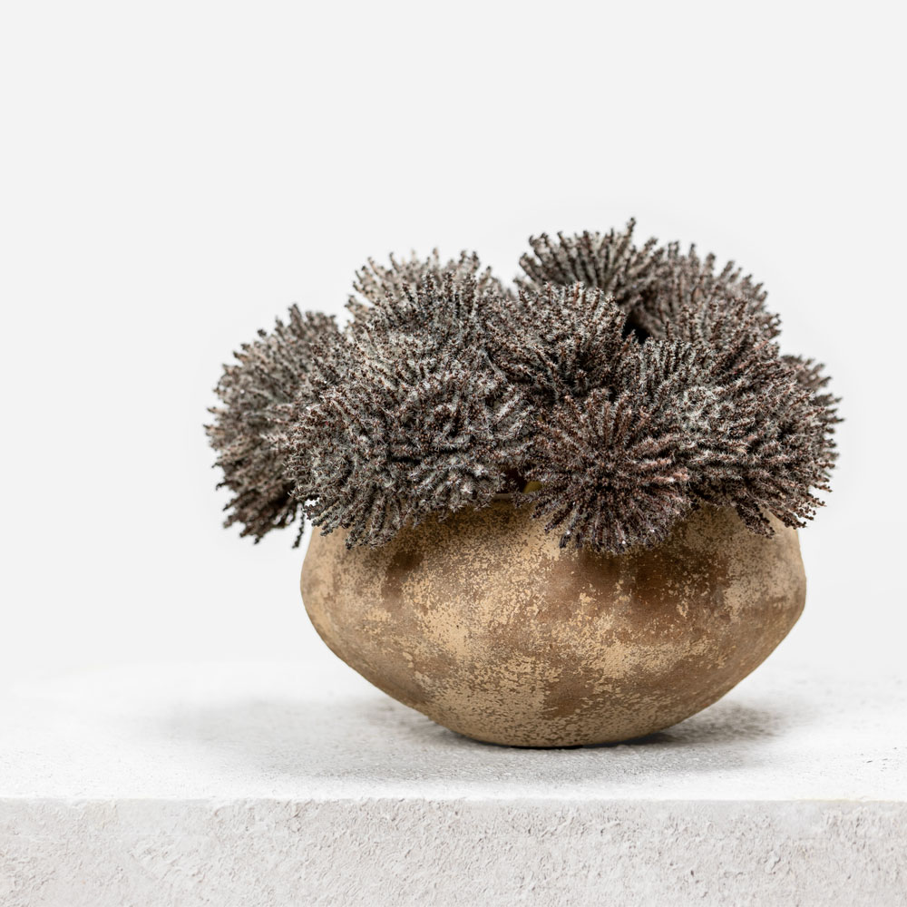 Ένα ιδιαίτερο διακοσμητικό λουλούδι με αφρώδη υφή, σε καφέ απόχρωση με ρεαλιστική λεπτομέρεια. Το AROMA BLOSSOMS των 22cm χαρίζει μία οργανική και φυσική αίσθηση στη διακόσμηση, ιδανικό για συνθέσεις με boho ή rustic χαρακτήρα, αλλά και για minimal στυλ που αναζητά υφές.