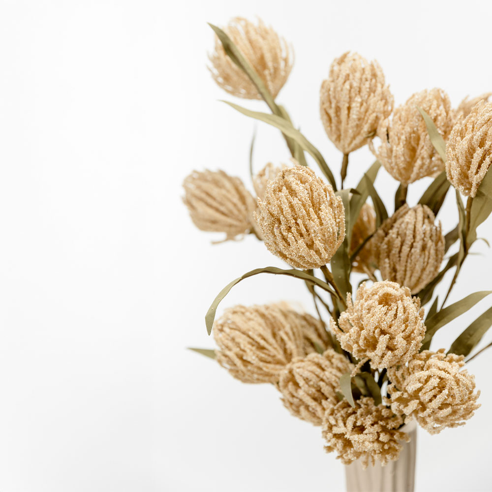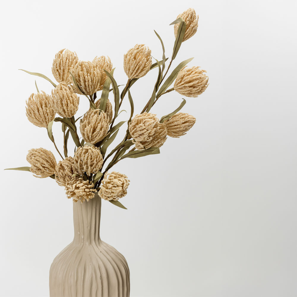 Το τεχνητό λουλούδι AROMA ESSENCE 65cm συνδυάζει διακριτικά μπεζ άνθη και πράσινα φύλλα, προσφέροντας μια φυσική, οργανική αίσθηση στη διακόσμηση του χώρου σας. Κατασκευασμένο από ελαφρύ FOAM και PVC, είναι ιδανικό για να συμπληρώσει βάζα, εποχιακές ανθοσυνθέσεις ή ρουστίκ διακοσμητικές γωνιές.