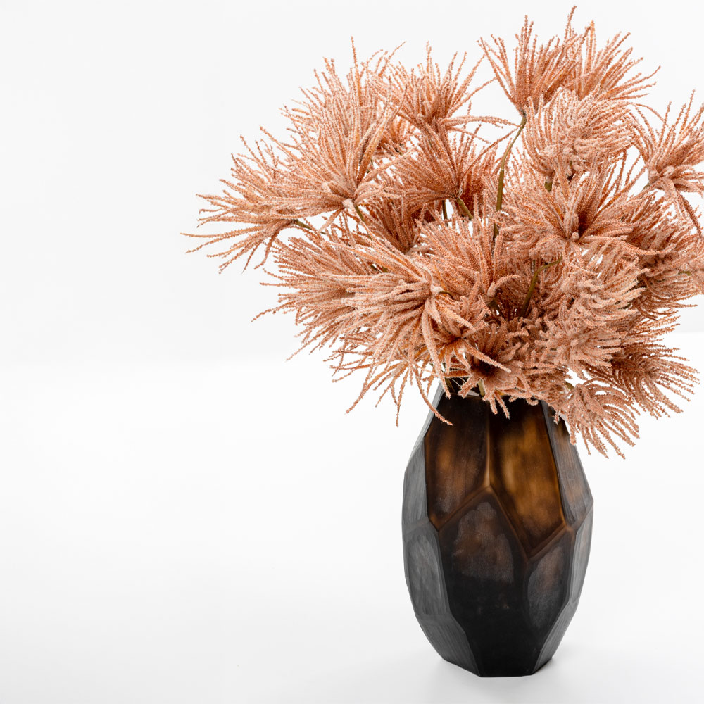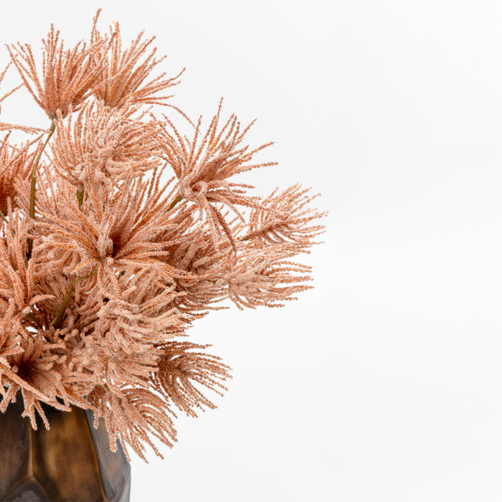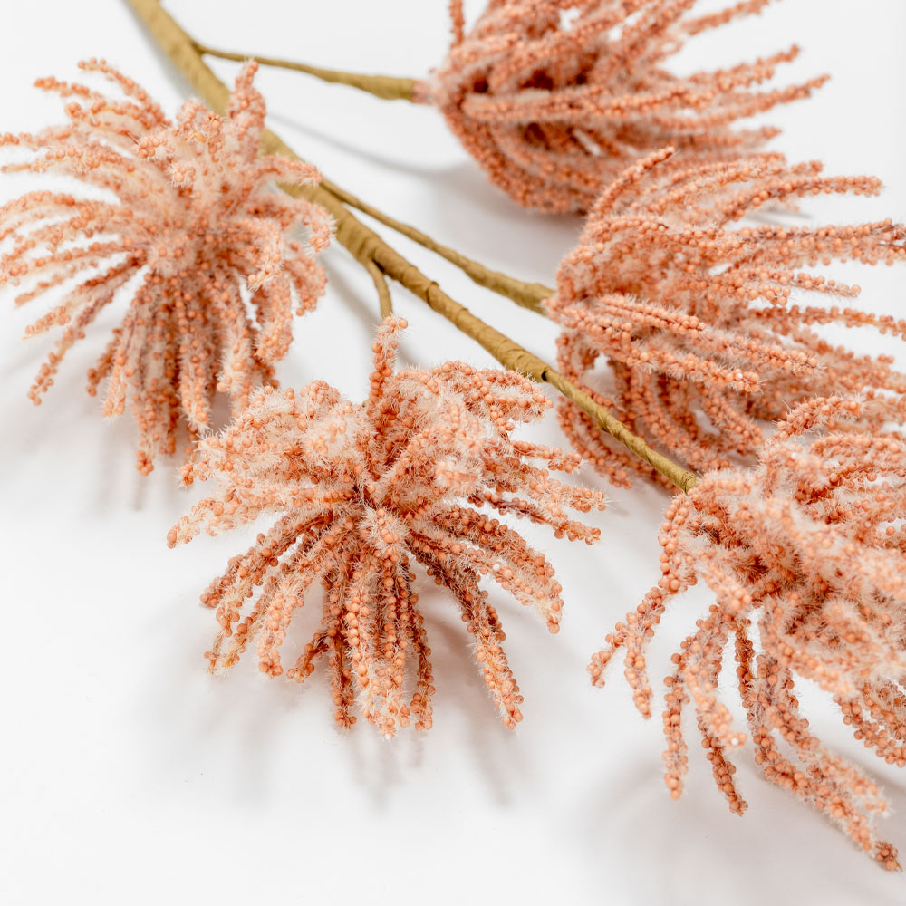 Διακοσμητικό τεχνητό λουλούδι με κομψούς ανθούς σε απόχρωση κοραλί, ιδανικό για να δώσει χρώμα και χαρακτήρα σε κάθε σύνθεση. Το ιδιαίτερο σχήμα του προσφέρει κίνηση και μοντέρνα αισθητική στη διακόσμηση του χώρου.