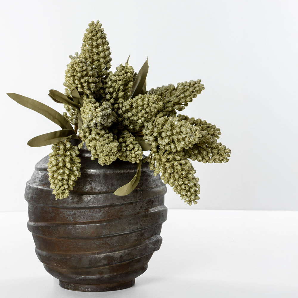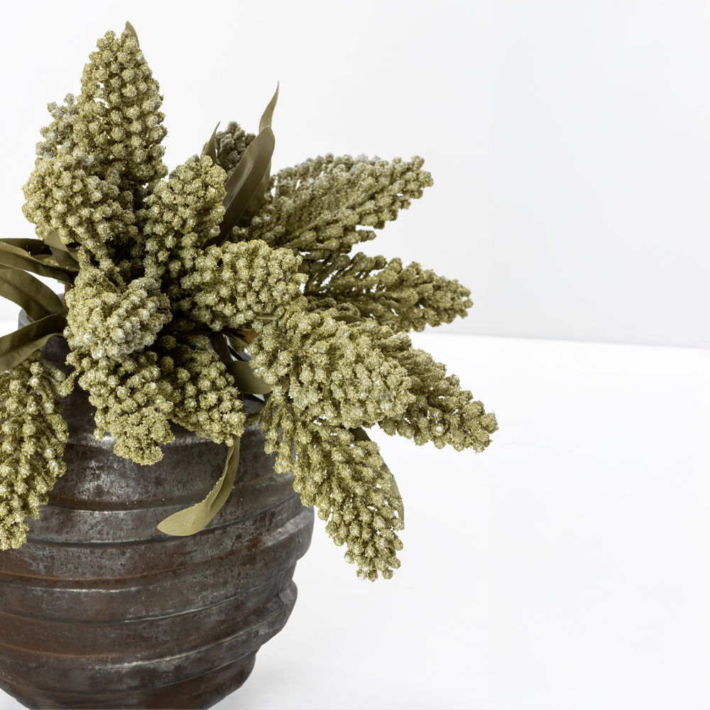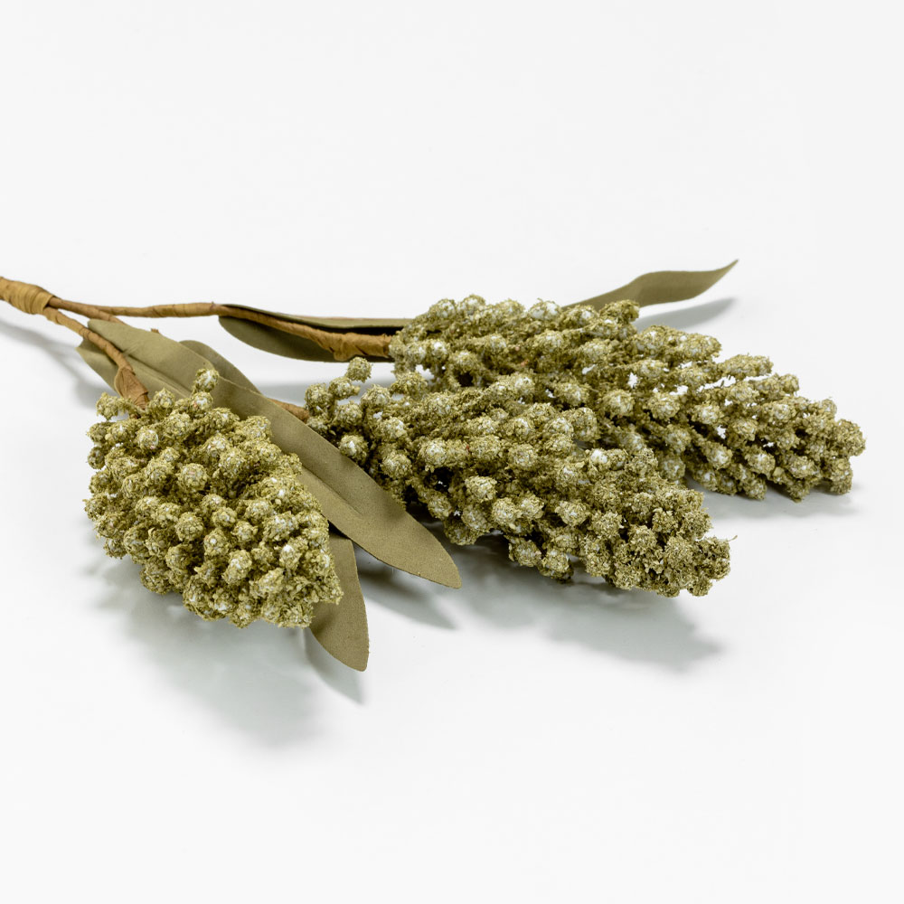 Το AROMA WISHPER είναι ένα τεχνητό λουλούδι με εμφάνιση σταχυών, που φέρνει στον χώρο μια φυσική, γήινη αίσθηση. Οι μικρές, ανάγλυφες κεφαλές του σε πράσινες αποχρώσεις, από foam, θυμίζουν αποξηραμένο φυτό και δίνουν χαρακτήρα χωρίς ένταση.