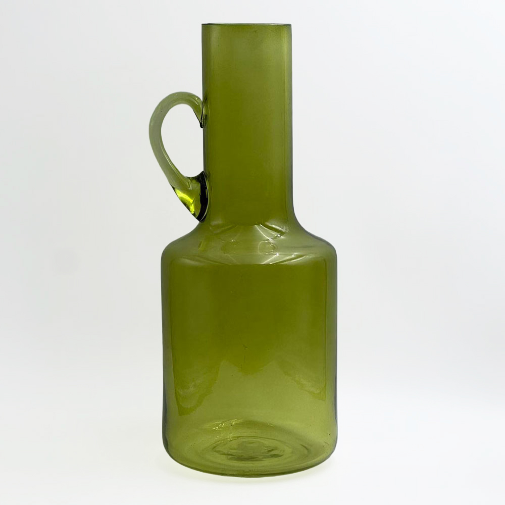 Το πράσινο γυάλινο βάζο ARTISAN (14x14x35 cm), σε σχήμα κανάτας, συνδυάζει κομψότητα και φρεσκάδα. Η ιδιαίτερη απόχρωση και η υφή του γυαλιού το καθιστούν ιδανικό για να φιλοξενήσει φρέσκα ή αποξηραμένα λουλούδια, ανανεώνοντας τον χώρο με φυσικό και μοντέρνο τρόπο.