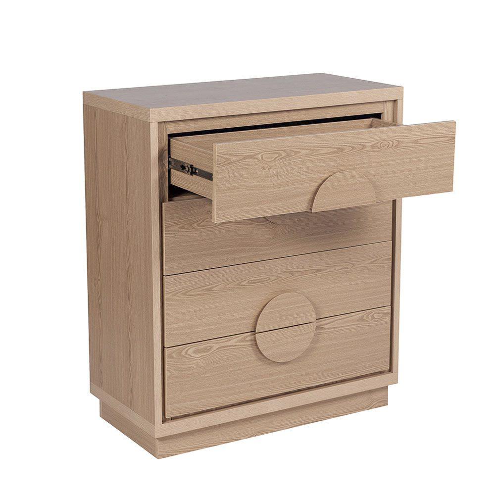 Η συρταριέρα Axis ενσωματώνει τη μοντέρνα αισθητική και τη λειτουργικότητα, καθιστώντας την ιδανική επιλογή για κάθε σύγχρονο χώρο. Κατασκευασμένη από επένδυση μελαμίνης σε φυσική απόχρωση, αποπνέει ζεστασιά και φυσική κομψότητα. Διαθέτει τέσσερα ευρύχωρα συρτάρια, σχεδιασμένα με minimal γραμμές και διακοσμητικά κυκλικά στοιχεία που προσθέτουν μοναδική αισθητική. Η Axis συνδυάζει την πρακτικότητα με την εκλεπτυσμένη εμφάνιση, προσφέροντας έναν εξαιρετικό τρόπο οργάνωσης και στυλ για κάθε δωμάτιο του σπιτιού σας.