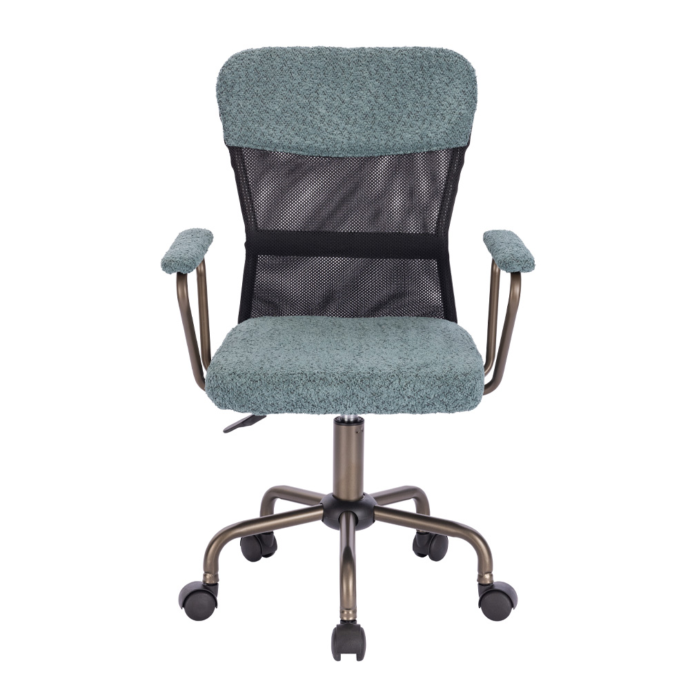 Η καρέκλα γραφείου Bell φέρνει κομψότητα και άνεση στον χώρο εργασίας σας, αποτελώντας μια εξαιρετική επιλογή για επαγγελματική ή οικιακή χρήση. Το κάθισμα διαθέτει μπουκλέ επένδυση σε μέντα απόχρωση, ενώ η πλάτη συνδυάζει την μπουκλέ επένδυση με το μαύρο δικτυωτό ύφασμα, προσφέροντας εργονομία και εξαιρετική κυκλοφορία του αέρα για μέγιστη άνεση.Η μεταλλική βάση σε χρώμα gunmetal εξασφαλίζει ανθεκτικότητα και σταθερότητα, ενώ ο μηχανισμός Up & Down επιτρέπει την εύκολη ρύθμιση του ύψους για καλύτερη προσαρμογή στις ανάγκες σας.Η Bell είναι η ιδανική επιλογή για όσους αναζητούν λειτουργικότητα και στυλ σε μια μοντέρνα καρέκλα γραφείου.