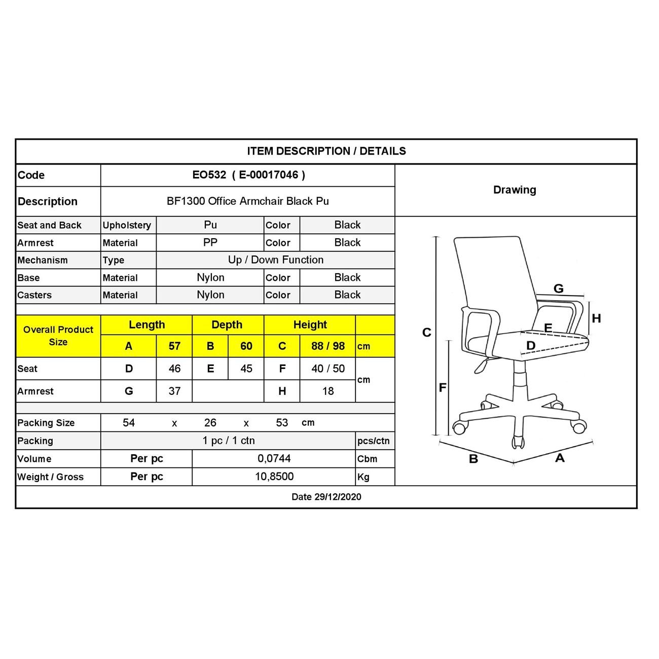 BF1300 Πολυθρόνα Γραφείου PU Μαύρο