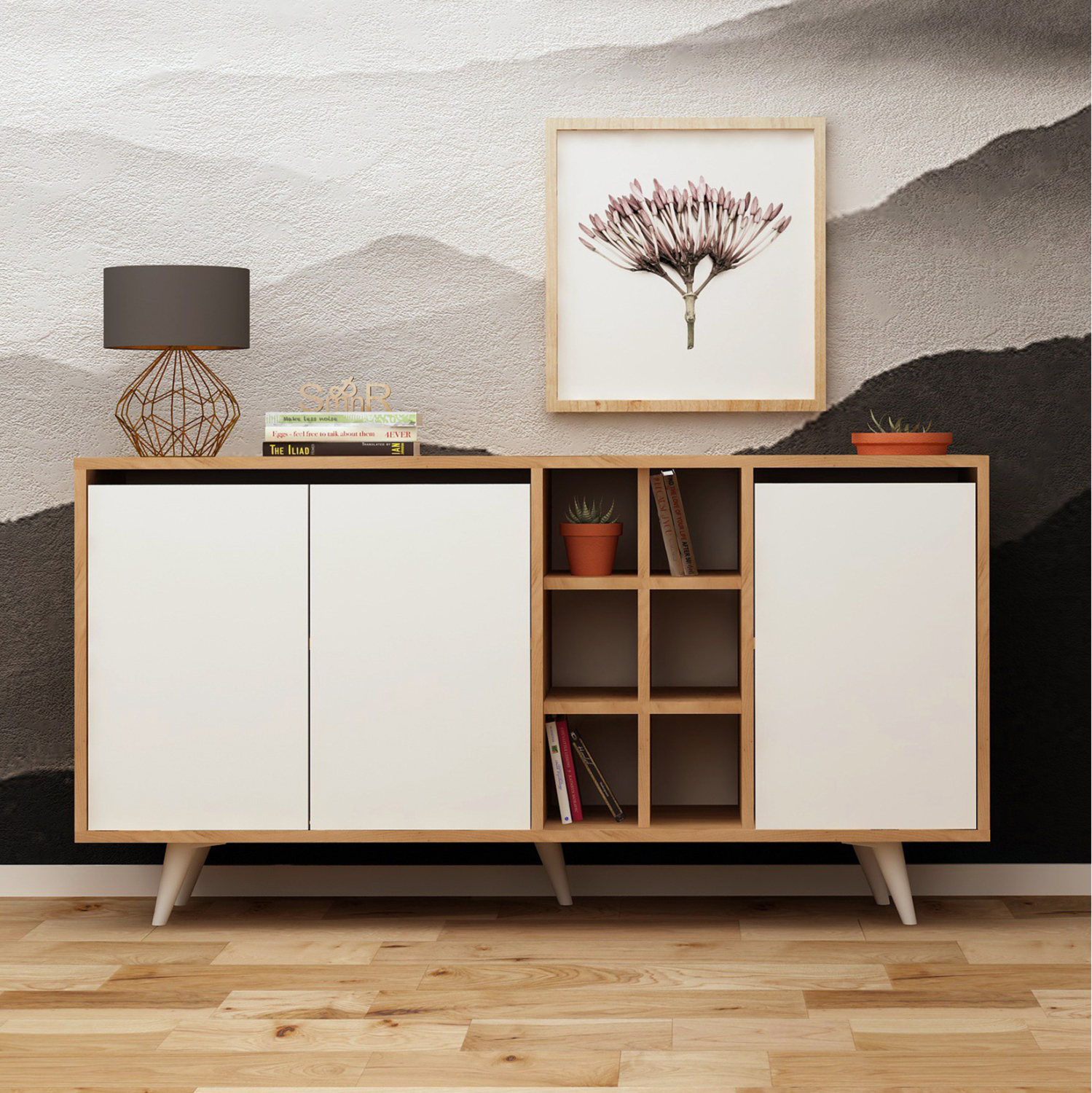 INFO: Το έπιπλο μπουφές έχει μακρά ιστορία, καθώς φαίνεται πως μας ήρθε από την Σκανδιναβία, όπου αρχικά χρησιμοποιούνταν για το σημείο που σερβίρονταν αλκοολούχα ποτά. Η ιδέα υιοθετήθηκε από τους Γάλλους που, με τη γνωστή τους κομψότητα, την πήγαν ένα βήμα παρακάτω και σταδιακά γνώρισε παγκόσμια αναγνώριση. Στην Ελλάδα αγαπάμε πολύ τους μπουφέδες, τους οποίους συναντάμε όλες τις τελευταίες δεκαετίες, σε διάφορα σχέδια, μεγέθη και στιλ.