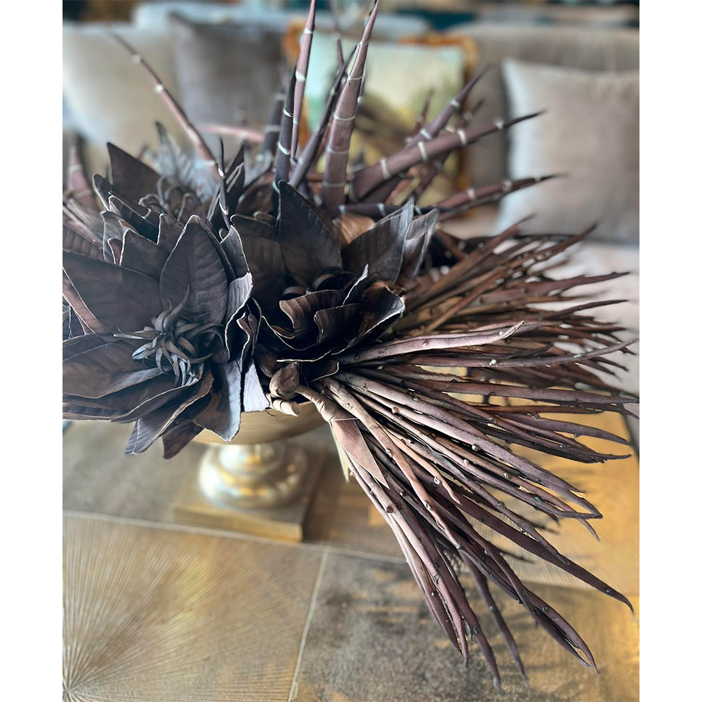 Το τεχνητό λουλούδι BROWN 2, ύψους 76cm, κατασκευασμένο από EVA Foam σε καφέ απόχρωση, αποτελεί μια ιδιαίτερη και γήινη πρόταση για διακόσμηση. Τα στιβαρά πέταλα με μεταλλική υφή και τα φυσικά πράσινα φύλλα δημιουργούν μια ρεαλιστική και εντυπωσιακή παρουσία. Ιδανικό για συνθέσεις με βάζα, βιτρίνες ή εποχιακές διακοσμήσεις, δίνει έναν rustic και ταυτόχρονα μοντέρνο χαρακτήρα στον χώρο.
