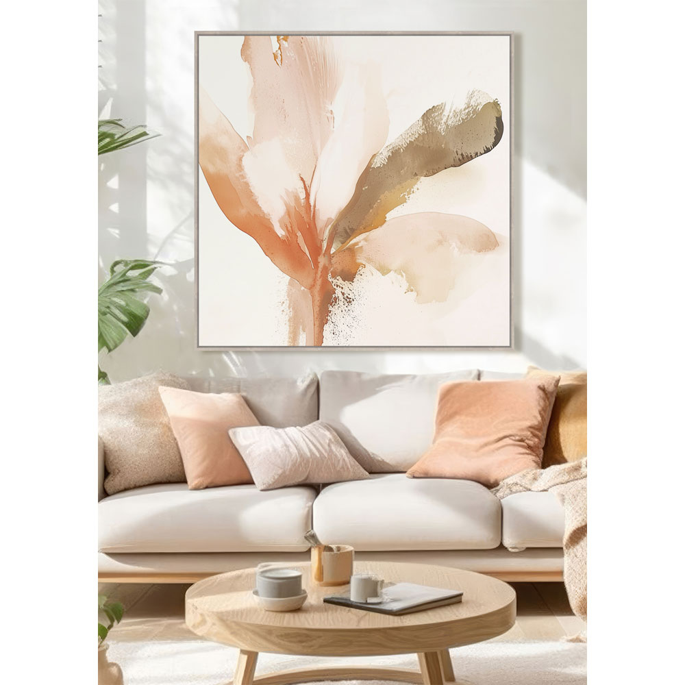 Ο πίνακας CALANDIUM.B αποδίδει ένα αέρινο botanical design σε καμβά, με μπεζ βάση και απαλές πολυχρωμικές πινελιές που θυμίζουν λουλούδι σε κίνηση. Η φυσική ξύλινη κορνίζα αναδεικνύει τη φωτεινότητα και τη διακριτική κομψότητα του έργου. Με διαστάσεις 80x80x4 cm, προσθέτει φρεσκάδα και ηρεμία στον χώρο. Ταιριάζει ιδανικά σε υπνοδωμάτιο, living room, ή χώρους wellness όπου ζητείται χαλαρωτική αισθητική.