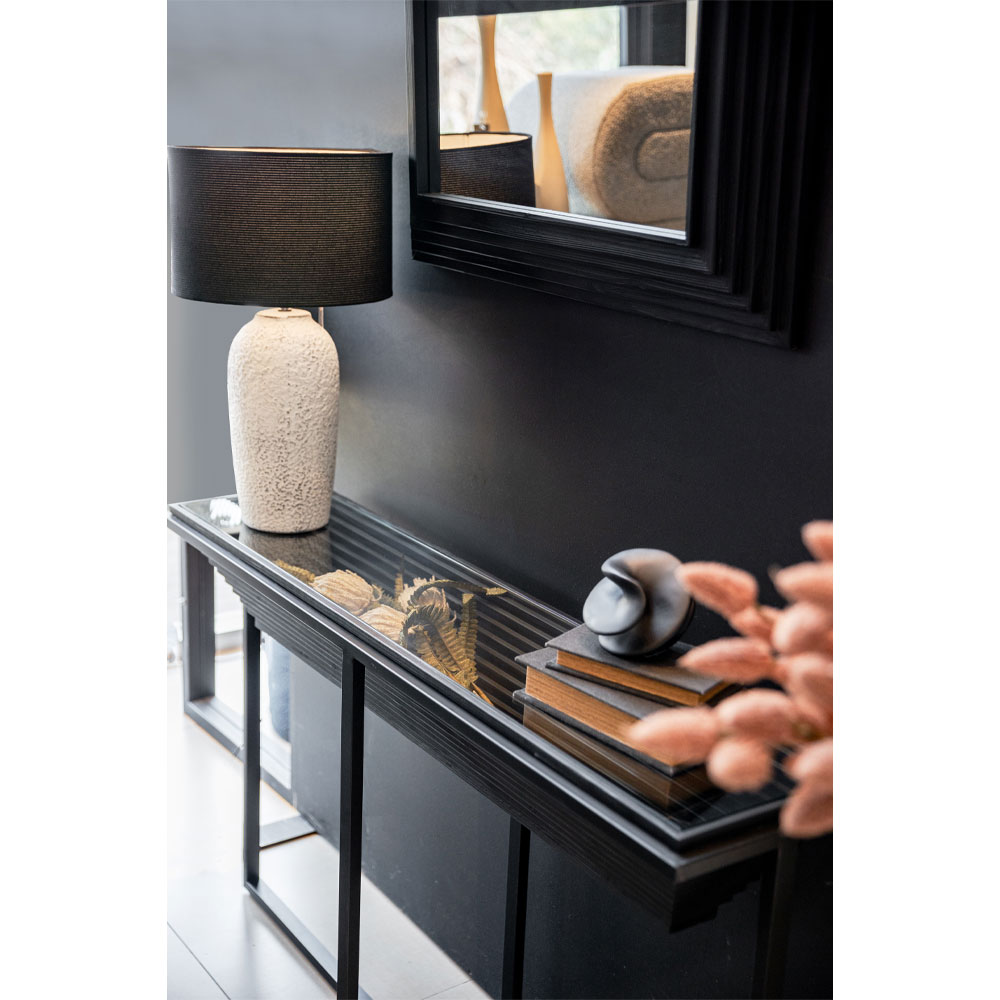 Αναδείξτε τη μοντέρνα κομψότητα και την υψηλή αισθητική του χώρου σας με την κονσόλα Cheops. Κατασκευασμένη από ξύλο ελάτου, η κονσόλα διαθέτει επιφάνεια από μαύρο γυαλί, προσδίδοντας πολυτέλεια και διαχρονικό στυλ. Ο σκελετός της από μαύρο μέταλλο προσφέρει σταθερότητα και minimal χαρακτήρα, καθιστώντας την ιδανική για κάθε χώρο που απαιτεί εκλεπτυσμένο design. Η κονσόλα Cheops είναι μια εξαιρετική επιλογή για την είσοδο, το καθιστικό ή τον επαγγελματικό σας χώρο, συνδυάζοντας φυσικά υλικά με μοντέρνα αισθητική για ένα εντυπωσιακό αποτέλεσμα.