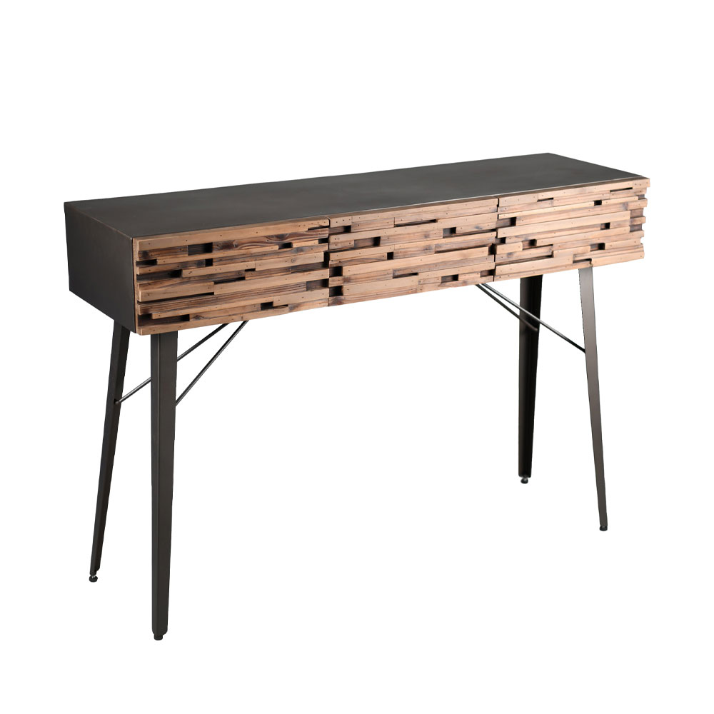 Αναδείξτε την εκλεπτυσμένη αισθητική και τη φυσική ομορφιά του χώρου σας με την κονσόλα Coast. Κατασκευασμένη από ξύλο ελάτου, η επιφάνειά της συνδυάζει μαύρη και φυσική απόχρωση, δημιουργώντας έναν μοναδικό αρμονικό συνδυασμό που αποπνέει ζεστασιά και μοντέρνο στυλ. Η μαύρη μεταλλική βάση προσφέρει σταθερότητα και κομψότητα, ενώ τα τρία πρακτικά συρτάρια παρέχουν άφθονο αποθηκευτικό χώρο για την οργάνωση των αντικειμένων σας. Η κονσόλα Coast είναι η ιδανική επιλογή για την είσοδο, το καθιστικό ή οποιοδήποτε σημείο του σπιτιού σας χρειάζεται μια λειτουργική και στυλάτη πινελιά. Ένα έπιπλο που συνδυάζει τη φυσικότητα με τη σύγχρονη αισθητική, αναβαθμίζοντας τον χώρο σας.