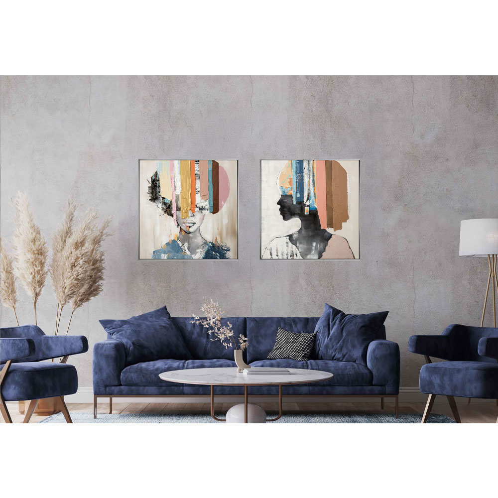 Ο χειροποίητος πίνακας Colorful Woman εκλύει ζωντάνια και ενέργεια. Οι πλούσιοι, ζωηροί τόνοι των χρωμάτων εκφράζουν θετικότητα και αισιοδοξία, προάγοντας παράλληλα την αίσθηση της ελευθερίας και της δημιουργικότητας της Γυναίκας, ενώ το ασημί πλαίσιο προσθέτει μια ευχάριστη και διακριτκή πινελιά λάμψης. Ο πίνακας Colorful Woman θα δημιουργήσει μια ατμόσφαιρα χαράς και θετικής ενέργειας στο καθιστικό αλλά και σε όλους τους χώρυς του σπιτιού.