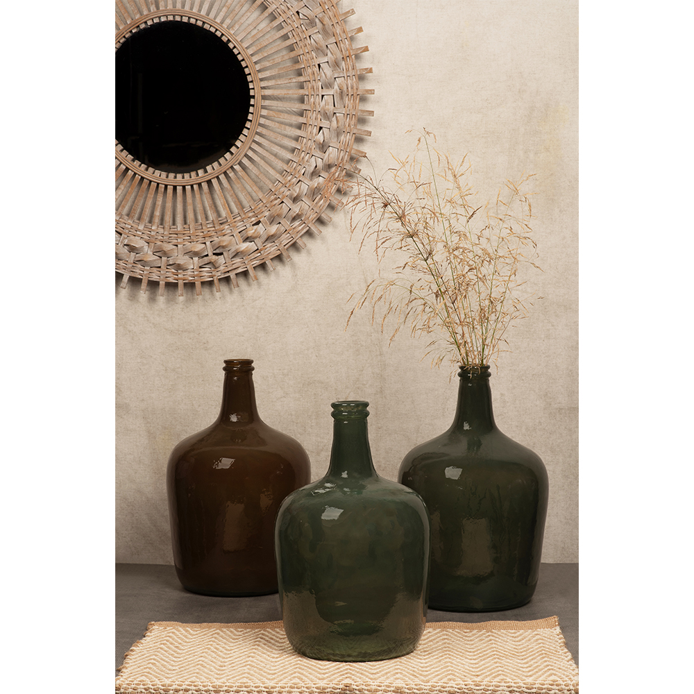 Η ρετρό αισθητική της σειράς μπουκαλιών Crushed Caramel προσφέρει έναν οικείο και ζεστό τόνο στον χώρο. Μπορούν να τοποθετηθούν, ως συλλογή ή μόνα τους, σε κονσόλες, τραπέζια, σε γωνιές της βεράντας ή δίπλα στο τζάκι, προσφέροντας μία ατμοσφαιρική και σοφιστικέ προσθήκη σε οποιονδήποτε χώρο. Κατασκευασμένα από ανακυκλωμένο γυαλί, σε θελκτική απόχρωση caramel, είτε τα χρησιμοποιήσετε ως βάζα είτε ως διακοσμητικά, θα ομορφύνουν κάθε γωνιά του σπιτιού.