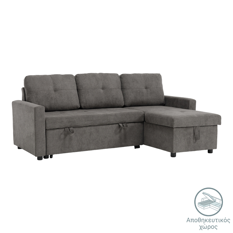 Γωνιακός αναστρέψιμος καναπές κρεβάτι Napora με αποθηκευτικό χώρο γκρι ύφασμα 214×83/138×90εκ