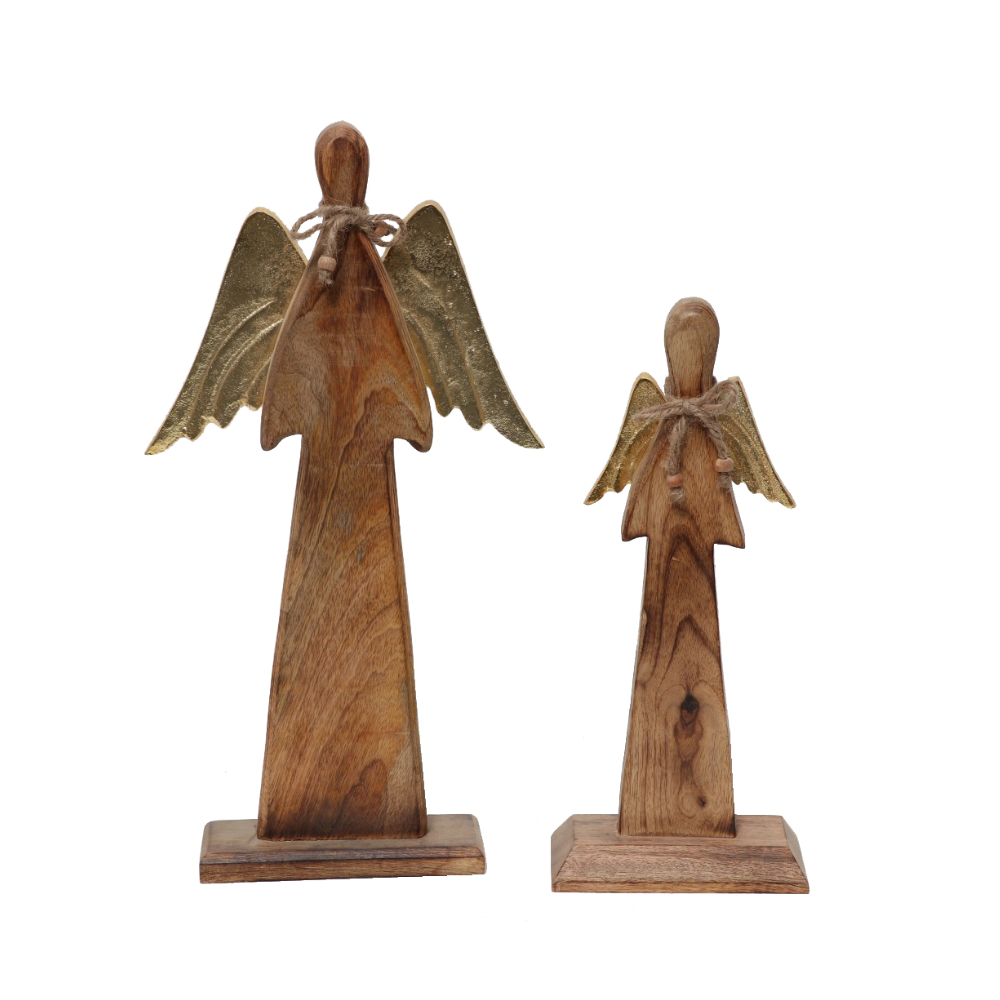 ELSA ΧΡΙΣΤΟΥΓΕΝΝΙΑΤΙΚΟ ΔΙΑΚΟΣΜΗΤΙΚΟ ΑΓΓΕΛΟΣ 22x6x41cm ΞΥΛΟ MANGO ΦΥΣΙΚΟ ΧΡΥΣΟ ΑΛΟΥΜΙΝΙΟ