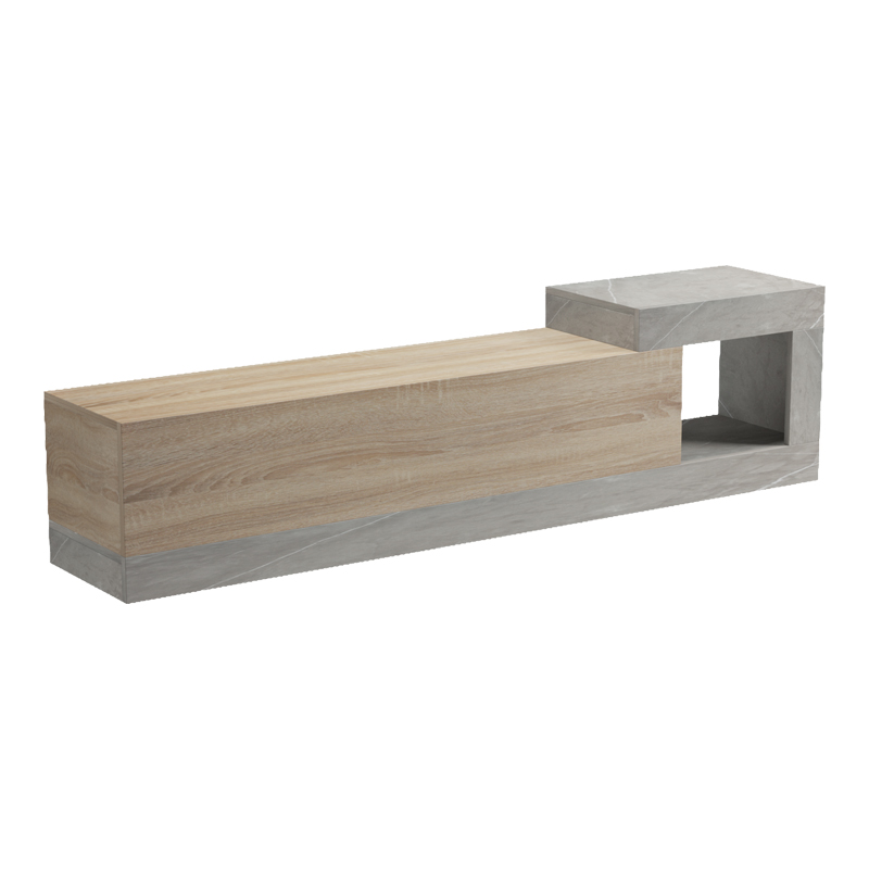 - Με αποθηκευτικους χώρους: Ενα κλειστο συρτάρι για διακριτική αποθήκευση συσκευών πολυμέσων, καλωδίων και άλλων αντικειμένων και μια ανοιχτή θέση στο πλαϊνό, ενα ανοιχτό ράφι σχήματος ‘L’, ιδανικό για την προβολή διακοσμητικών αντικειμένων, βιβλίων ή περιοδικών.
