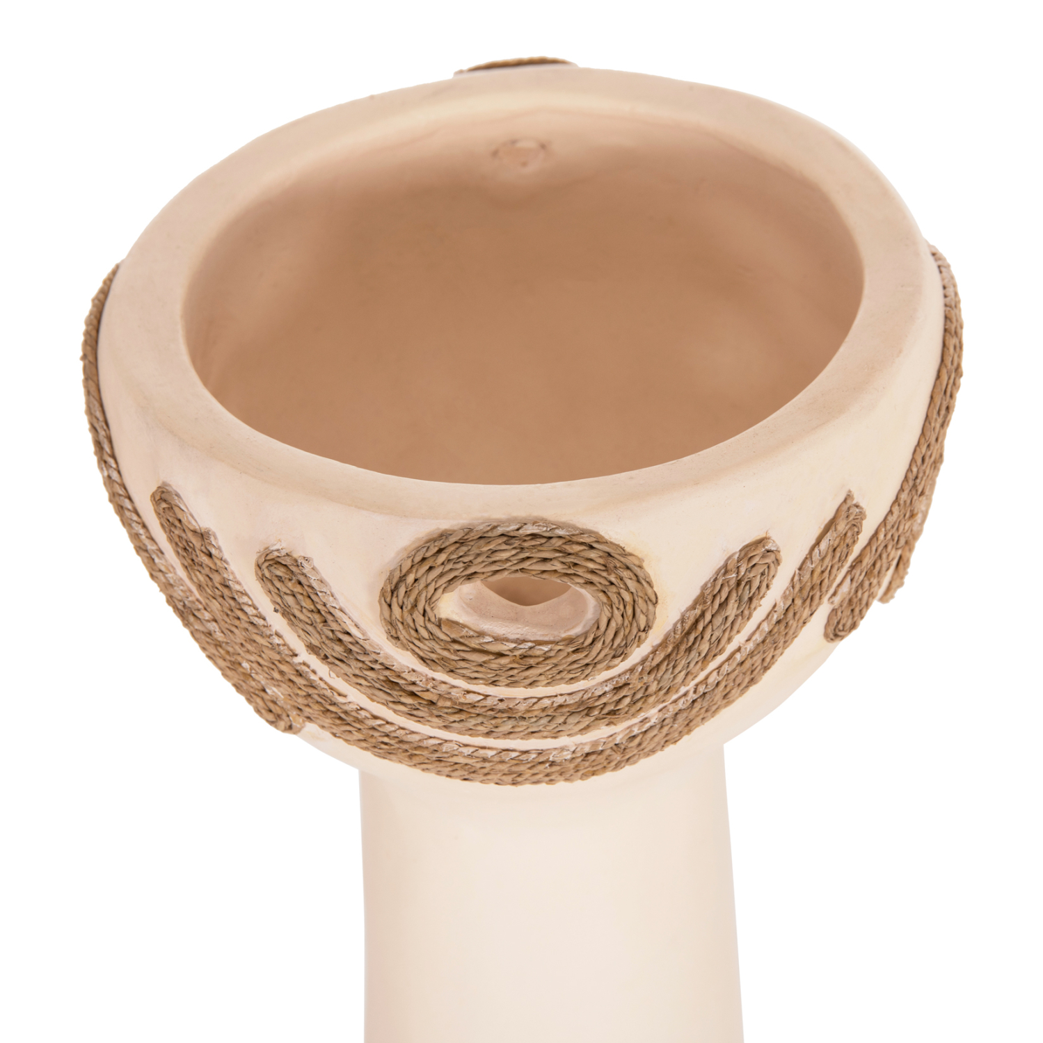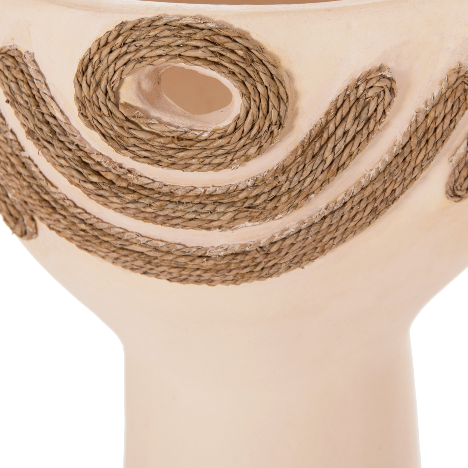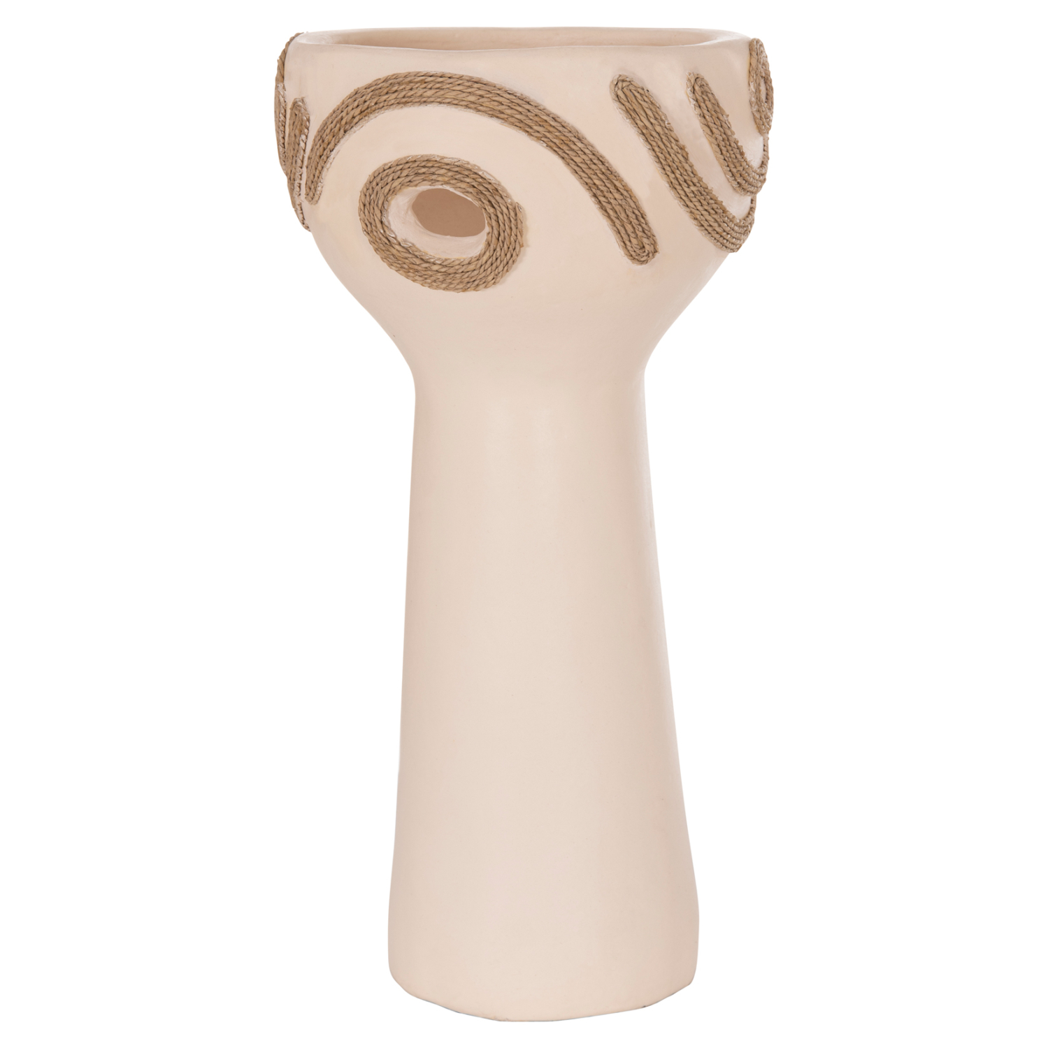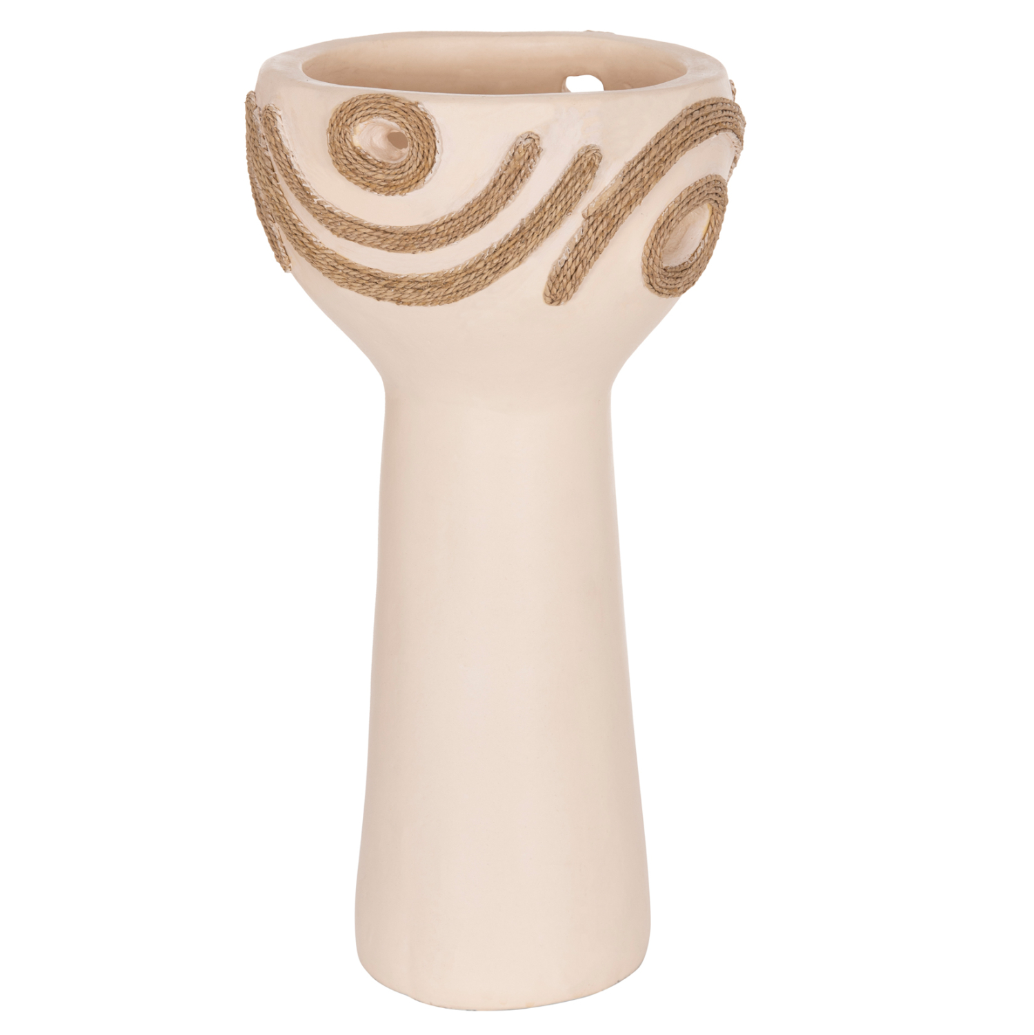 Το DEAN είναι ένα εντυπωσιακό διακοσμητικό βάζο σε σχήμα ψηλού κυπέλλου που προσθέτει χαρακτήρα και ένταση σε κάθε χώρο. Η τερακότα σε χρώμα ΚΡΕΜ δημιουργεί μια απαλή και φωτεινή, γήινη παρουσία, ενώ η διακόσμηση με σχοινί agel πλευρικά προσφέρει φυσική υφή και αυθεντικό, χειροποίητο ύφος. Ιδανικό για κονσόλες, τραπέζια ή επαγγελματικούς χώρους που αναζητούν ιδιαίτερες λεπτομέρειες με premium αισθητική.