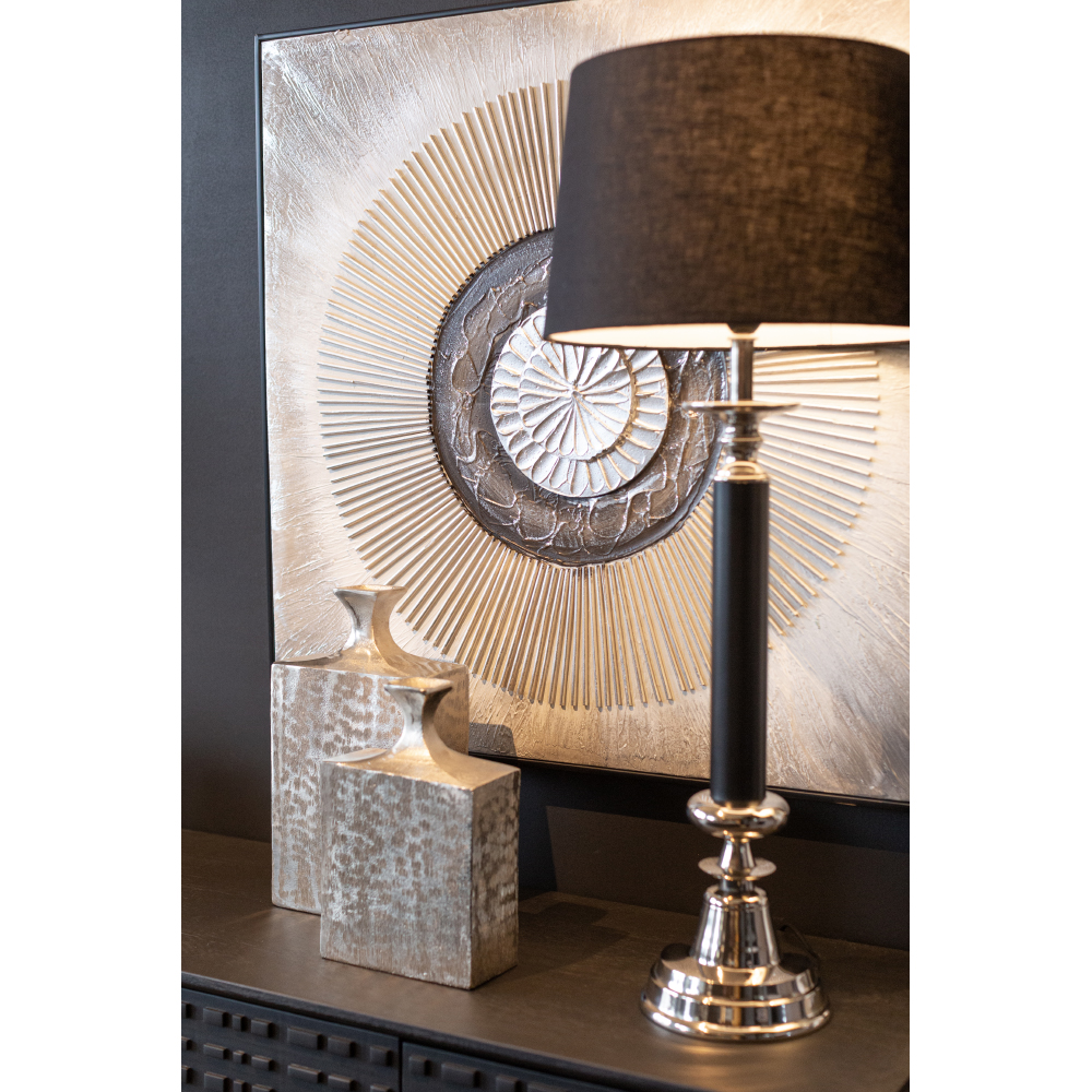 Το FLASCHE βάζο ξεχωρίζει με τη γεωμετρική, επιβλητική του φόρμα και το ασημί φινίρισμα που προσδίδει μοντέρνα κομψότητα. Η αλουμινένια επιφάνεια δημιουργεί μεταλλική λάμψη που ενισχύει κάθε minimal ή industrial χώρο. Ιδανικό για consoles, ράφια και μοντέρνες εισόδους. Ταιριάζει εξαιρετικά με ουδέτερους τόνους και φυσικά υλικά, δημιουργώντας ισορροπημένο styling.