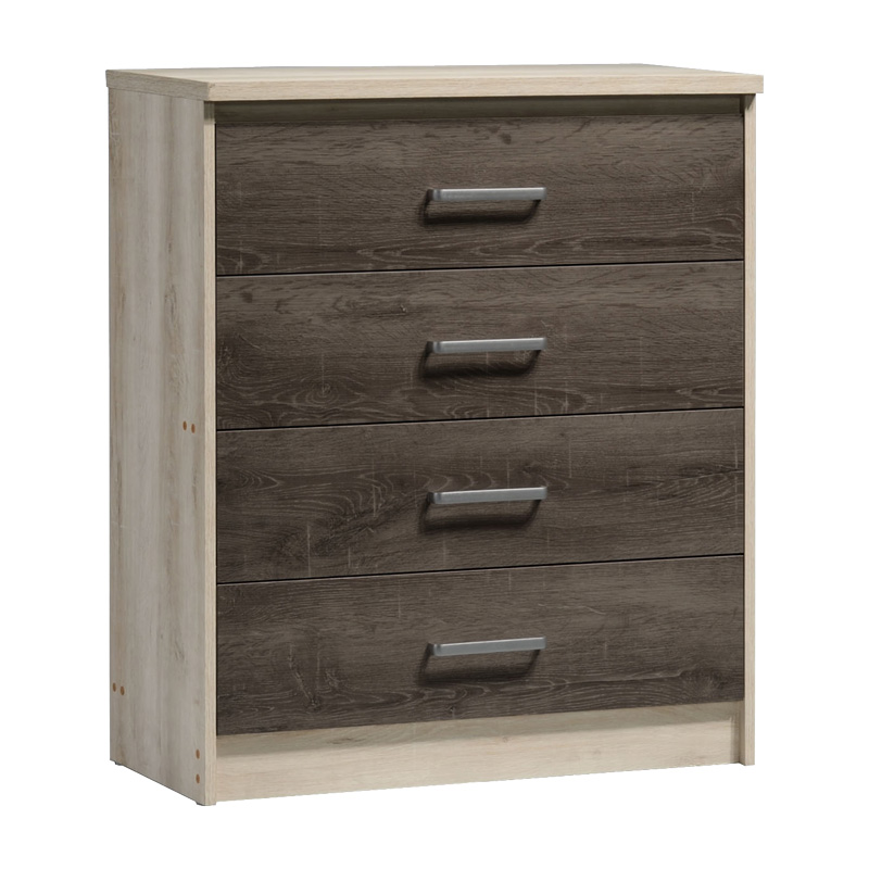 • Φέρει τέσσερα μεγάλα συρόμενα συρτάρια σε σκούρη απόχρωση.  Υψος συρταριού εξωτ: 20εκ -εσωτ 15εκ