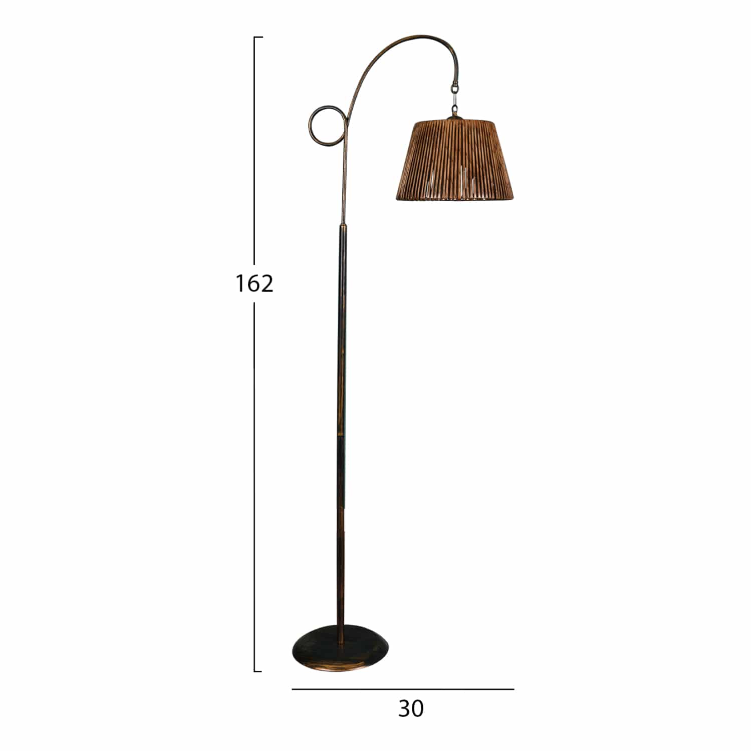 Φωτιστικό δαπέδου σε καφέ-μπρονζέ απόχρωση με bamboo καπέλο σε καρυδί απόχρωση.