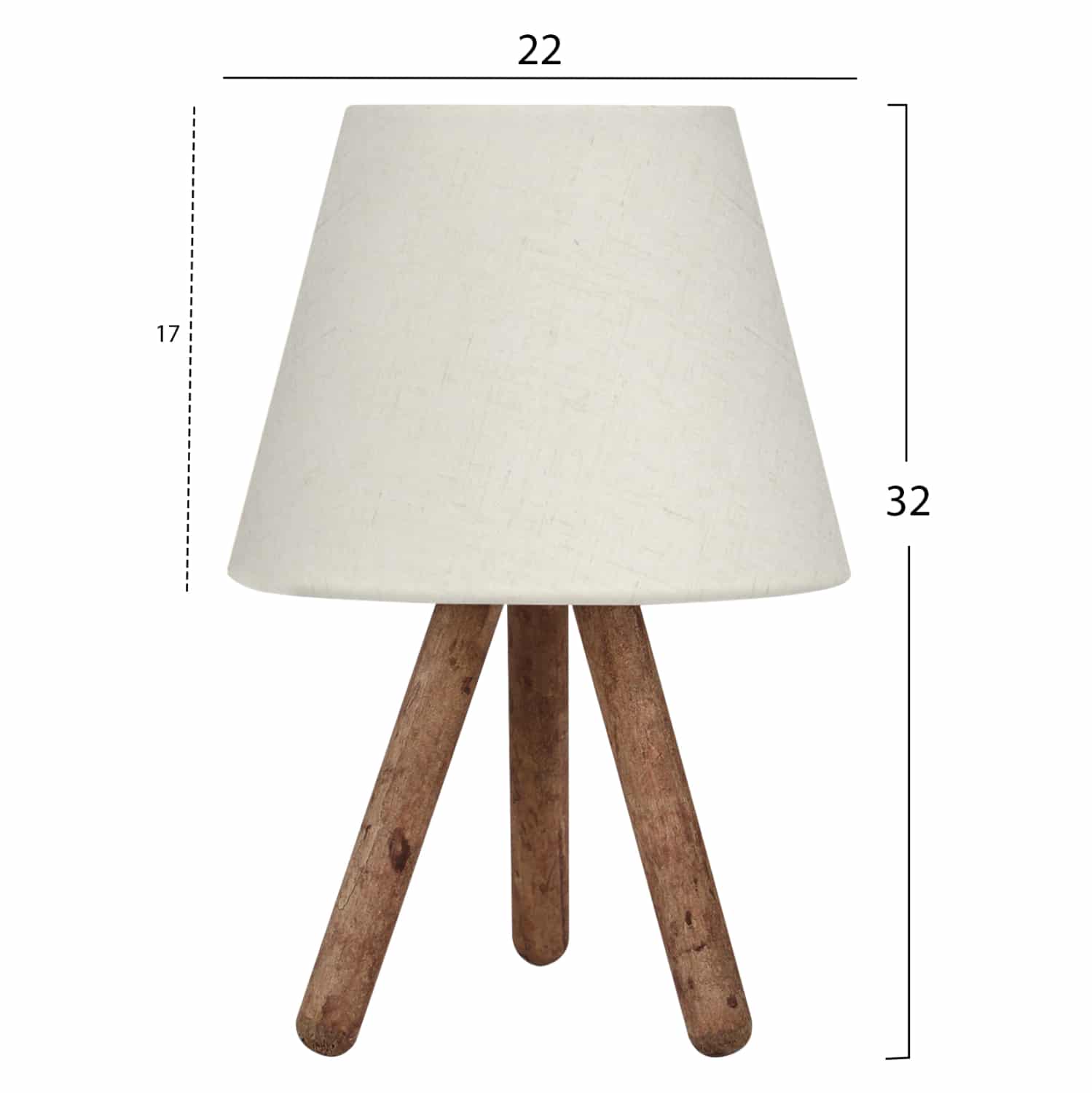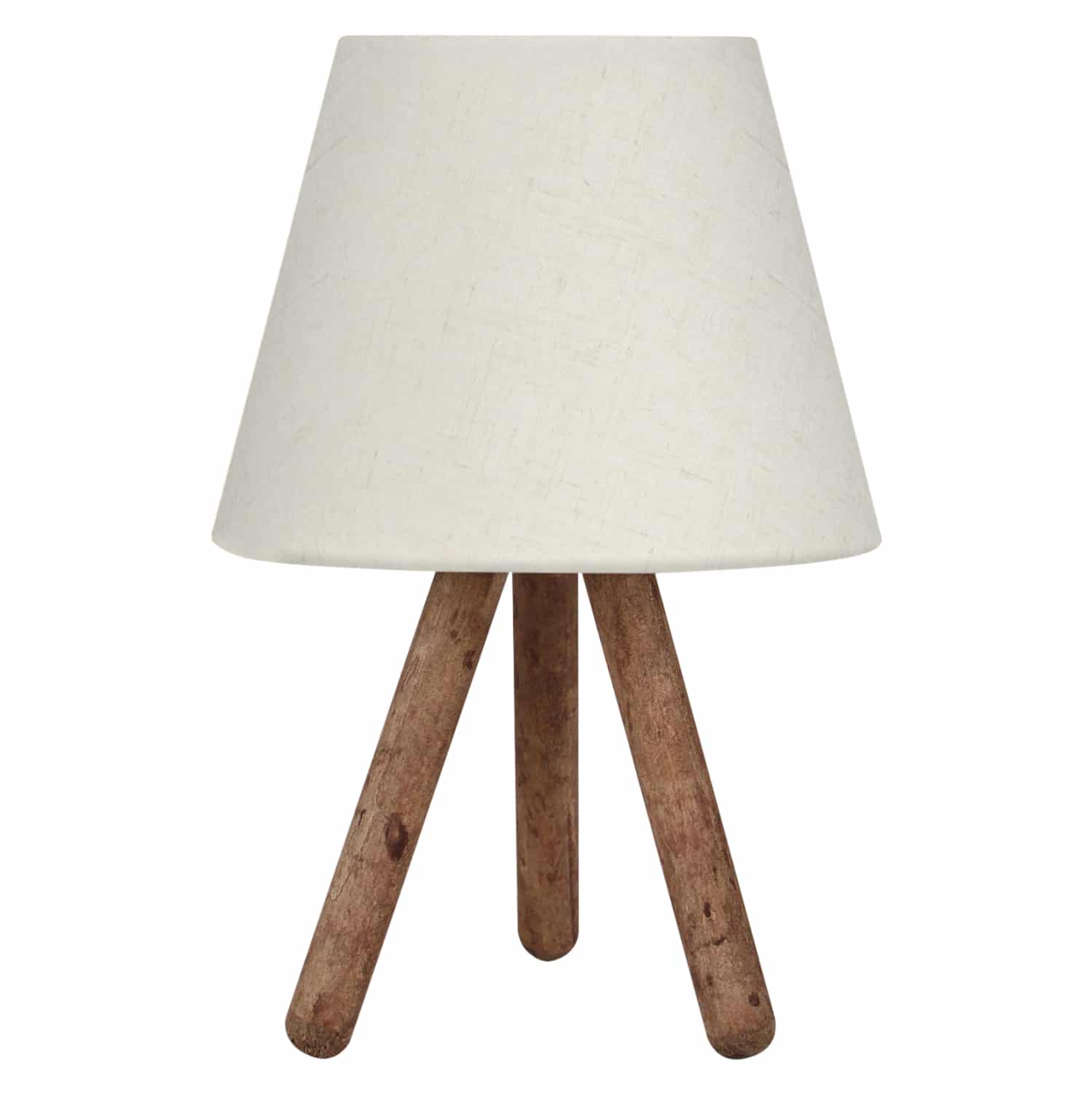 Ένα πολύ ιδιαίτερο και μοντέρνο επιτραπέζιο φωτιστικό. Δεν έχει την κλασική βάση ενός επιτραπέζιου φωτιστικού αλλά στέκεται σε ένα ξύλινο τρίποδο με το καπέλο του να στηρίζεται στην κορυφή του τρίποδου. Η σχεδίαση παραπέμπει περισσότερο σε επιδαπέδιο φωτιστικό παρά σε ένα επιτραπέζιο. Τα πόδια έχουν το μέγεθος και την μορφή σκυτάλης σε καφέ χρωματισμό, ενώ το καπέλο του φωτιστικού είναι σε χρώμα εκρου και έχει κυκλικό και τραπεζοειδές σχήμα. Αυτού του είδους τα φωτιστικά δεν προορίζονται για φωτιστικά διαβάσματος και αυτό πρέπει πάντα να λαμβάνεται υπόψη κατά την επιλογή τους. Είναι καθαρά διακοσμητικά και το ταίριασμά τους με τον περιβάλλοντα χώρο θα πρέπει να είναι αρμονικό. Αυτό το φωτιστικό είναι μοντέρνο, κομψό και βολικό σε διαστάσεις παρέχοντας αμέτρητες δυνατότητες «δεσίματος» με την υπόλοιπη διακόσμησή σας. Είναι ένα μικρό έργο τέχνης.