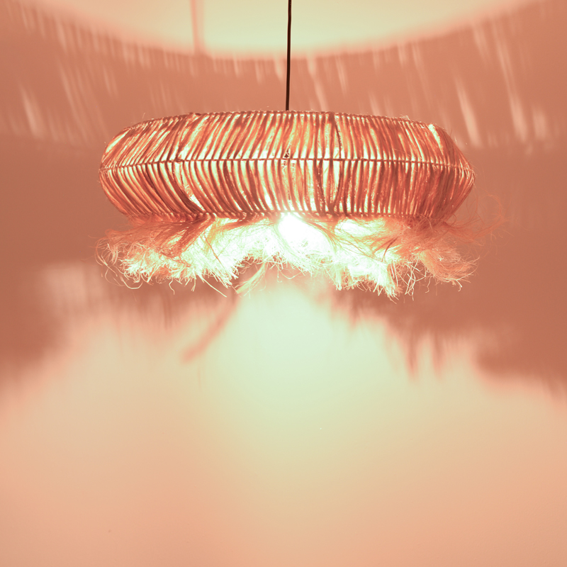 - Abaca: Το abaca είναι ένα φυσικό υλικό που προέρχεται από τις ίνες του φυτού Musa textilis (είδος μπανάνας), γνωστού και ως Manila hemp. Οι ίνες abaca εξάγεται από τον πολτό του στελέχους της μπανανιάς και είναι γνωστή για την αντοχή, την ανθεκτικότητα και την αιθέρια υφή της. Χρησιμοποιούνται ευρέως για την κατασκευή προϊόντων χειροτεχνίας όπως καλάθια, χαλιά, τσάντες και διακοσμητικά αντικείμενα. Τα κρεμαστά φωτιστικά από abaca είναι μια δημοφιλής επιλογή για σαλόνια, τραπεζαρίες και κρεβατοκάμαρες. Μπορούν να προσθέσουν μια τροπική ή boho αίσθητική σε κάθε χώρο.