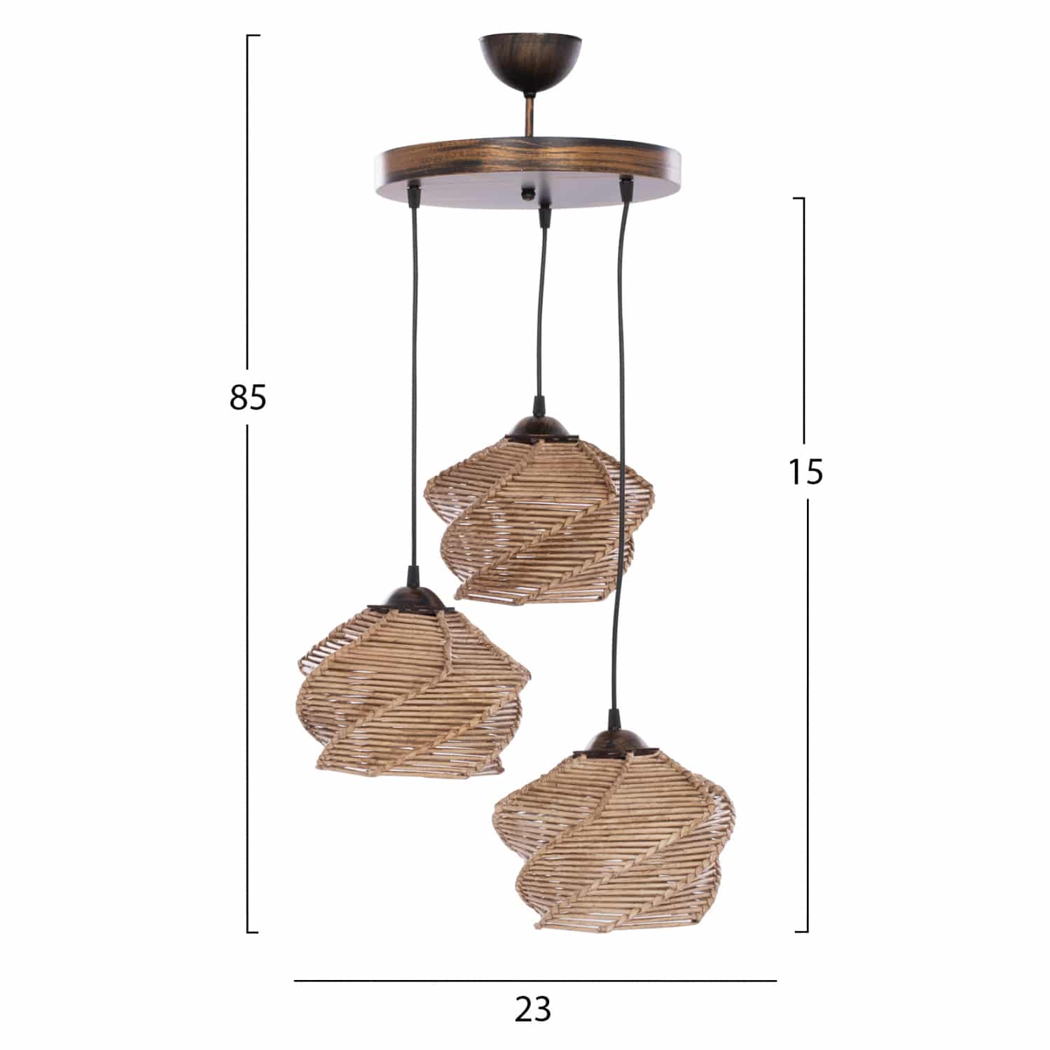 Κρεμαστό φωτιστικό οροφής, 3φωτο, σε φυσική απόχρωση.