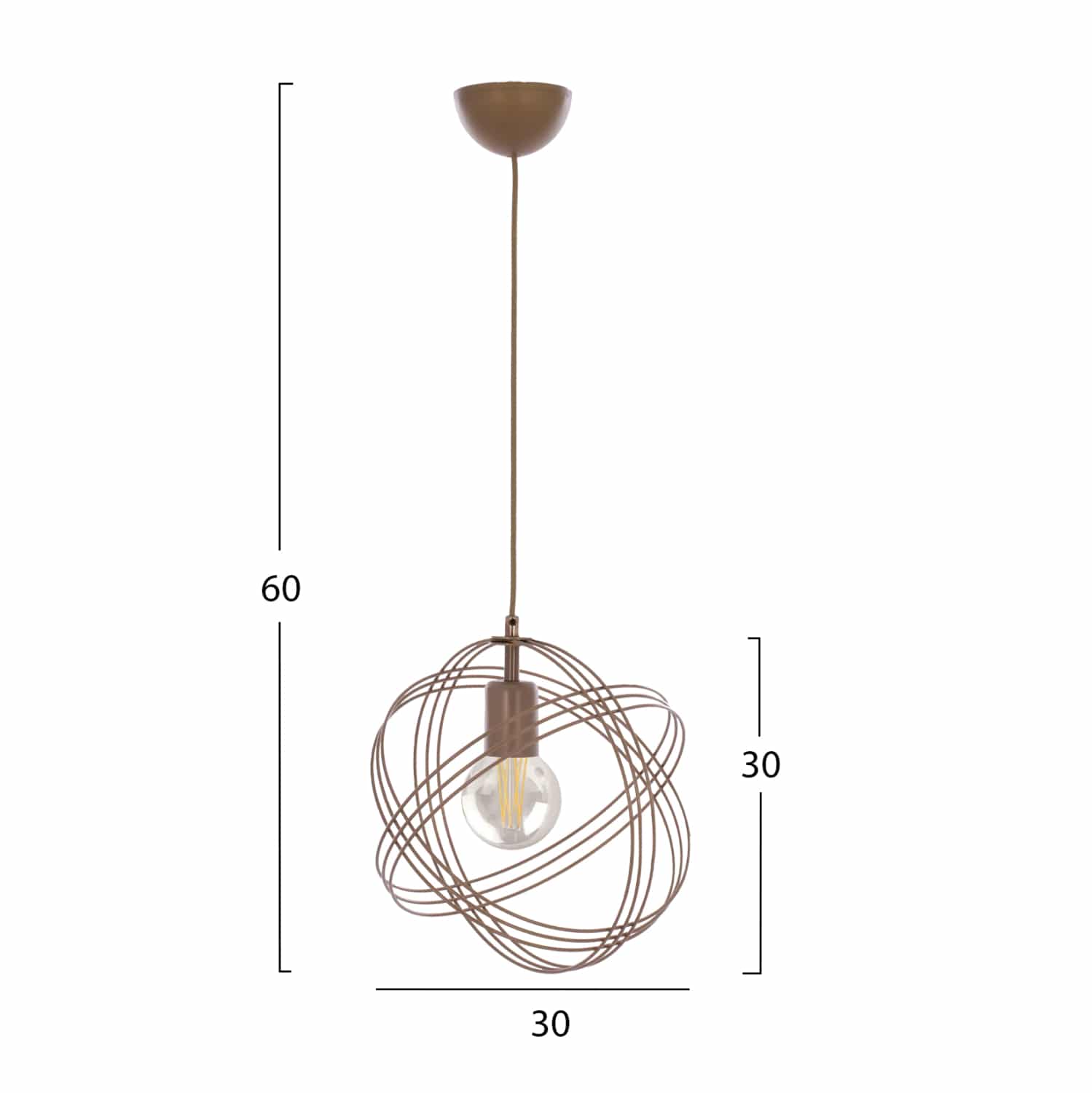 Πρόκειται για ένα μοντέρνο μονόφωτο που θα ενθουσιάσει τους πάντες. Η διάχυση του φωτός γίνεται προς κάθε κατεύθυνση χάρη στον σχεδιασμό του και αυτό το κάνει ιδανικό για πληθώρα χώρων, όπως σαλόνια, καθιστικά, κουζίνες εάν πρόκειται για το σπίτι σας και με εξαιρετική ευκολία μπορεί να ταιριάξει και σε επαγγελματικούς χώρους όπως εστιατόρια, καφέ, ξενοδοχεία κτλ. Το χάλκινο χρώμα του φωτιστικού και το design αιχμαλωτίζει τα βλέμματα, αλλά ταυτόχρονα απαιτεί και ιδιαίτερη διακοσμητική συνοχή για να αναδείξει πλήρως τις αισθητικές αρετές του.
