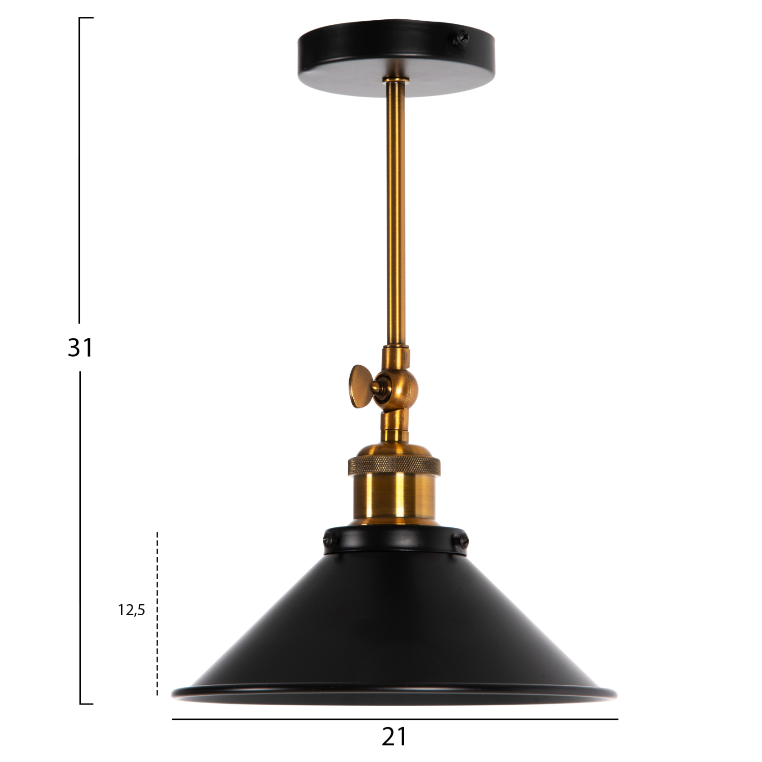 Το HΜ4121 είναι ένα νέο και πρακτικό μονόφωτο μεταλλικό φωτιστικό που θα ολοκληρώσει τη διακόσμησή σου. Διαθέτει μαύρο καπέλο και χρυσή σωλήνα κρέμασης. Το σημαντικό χαρακτηριστικό αυτού του φωτιστικού είναι ότι μπορεί να μονταριστεί και σε τοίχο, χάρη σε έναν μοχλό που «σπάει» την σωλήνα κρέμασης και στρέφει το καπέλο σε διαφορετική κατεύθυνση.