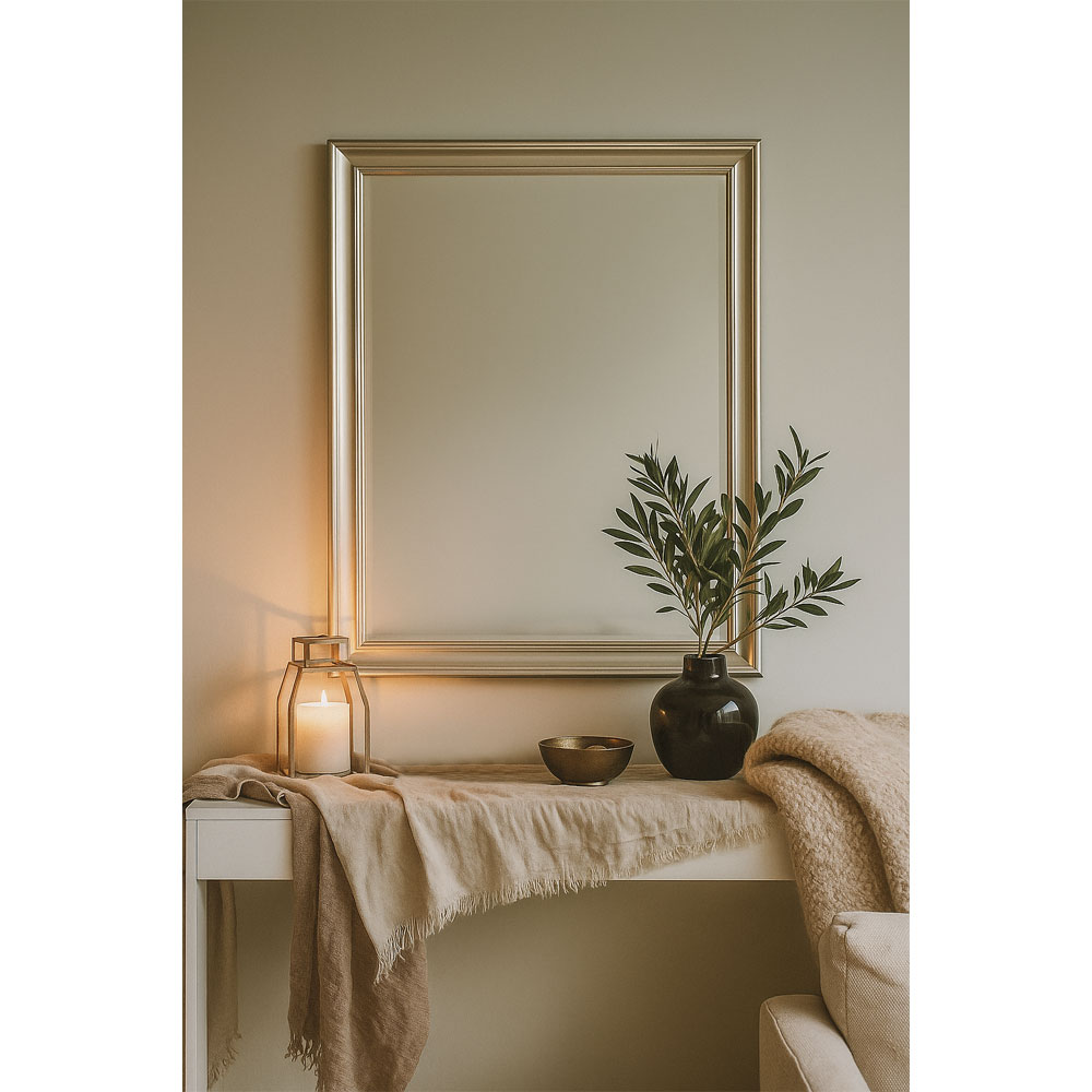 Ο καθρέπτης Frame αποπνέει διακριτική πολυτέλεια και κομψότητα. Το πλαίσιο του, κατασκευασμένο από ξύλο παυλωνίας σε ασημί σαμπανί απόχρωση, χαρίζει έναν εκλεπτυσμένο χαρακτήρα που ταιριάζει σε κάθε χώρο. Με τη διακριτική του λάμψη και τις καθαρές γραμμές, αναδεικνύει την αισθητική του περιβάλλοντος, προσφέροντας φωτεινότητα και βάθος. Ο Frame αποτελεί ιδανική επιλογή για όσους αναζητούν ένα κομψό διακοσμητικό στοιχείο με διαχρονική γοητεία.