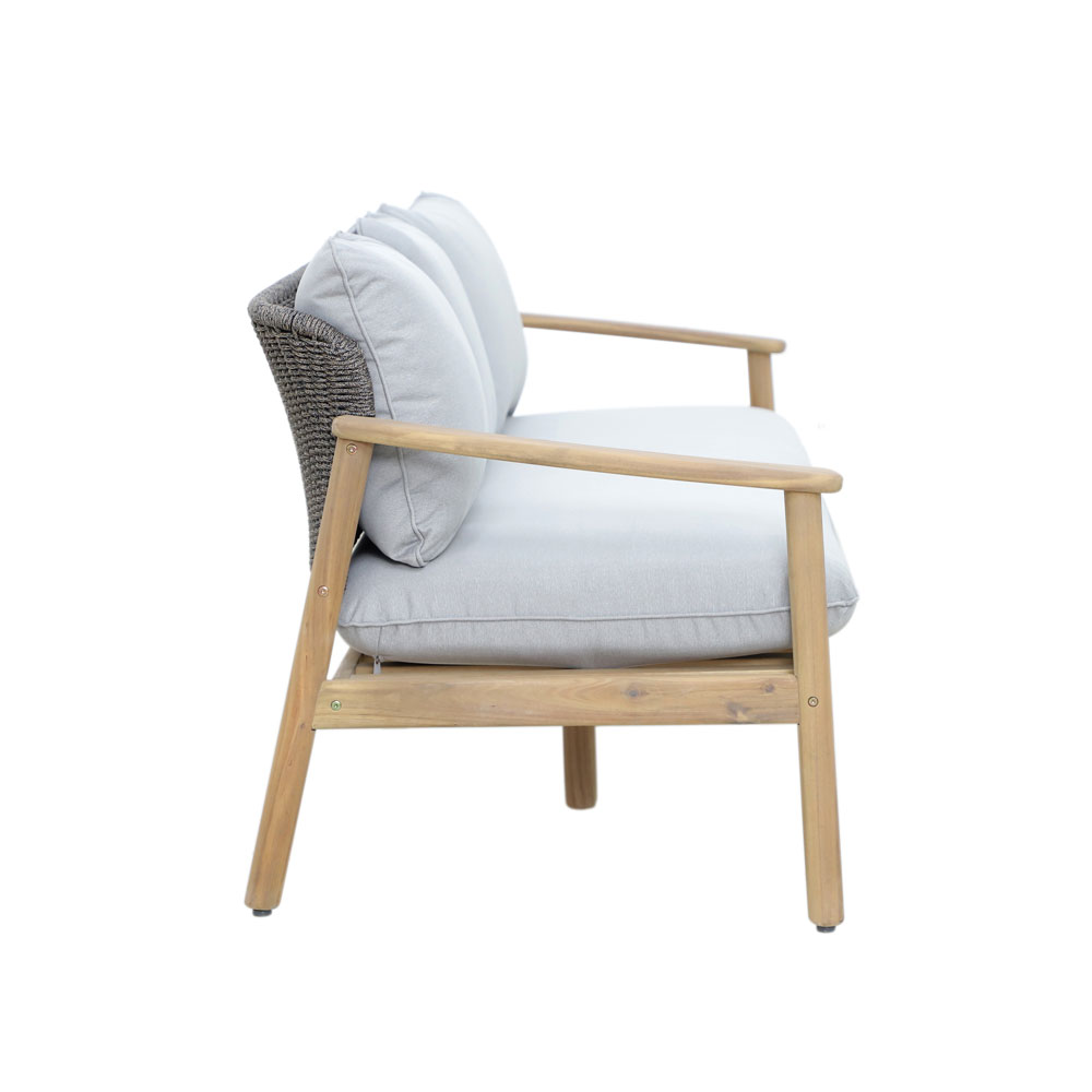 Το σετ σαλονιού Freeland συνδυάζει φυσική κομψότητα και άνεση, προσφέροντας ένα ολοκληρωμένο σύνολο για εσωτερικούς και εξωτερικούς χώρους. Κατασκευασμένο από ανθεκτικό ξύλο ακακίας, διαθέτει έναν τριθέσιο καναπέ, δύο πολυθρόνες και ένα τραπεζάκι σαλονιού, δημιουργώντας μια ατμόσφαιρα χαλάρωσης και υψηλής αισθητικής. Τα άνετα μαξιλάρια, ντυμένα με λινό ύφασμα σε γκρι απόχρωση, προσφέρουν εξαιρετική αίσθηση άνεσης και αναδεικνύουν τη διαχρονική του σχεδίαση. Το σετ Freeland αποτελεί την ιδανική επιλογή για όσους αναζητούν ένα σαλόνι που συνδυάζει φυσική ομορφιά, ποιότητα και λειτουργικότητα.
