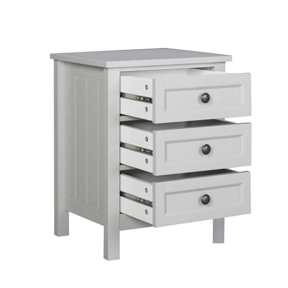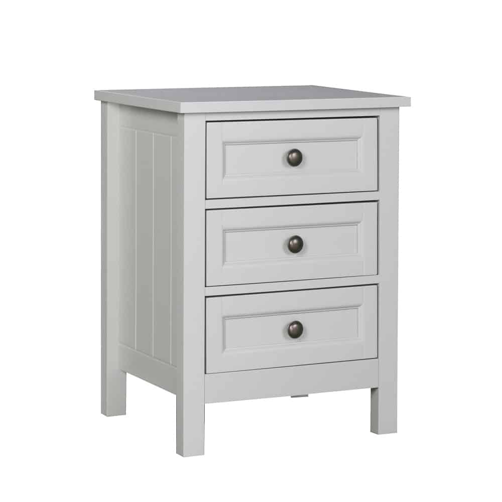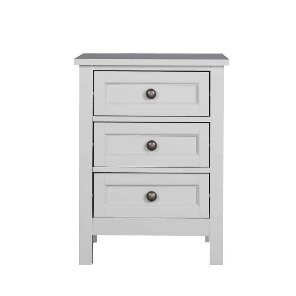 Αναδείξτε τη διαχρονική κομψότητα του χώρου σας με το κομοδίνο French. Κατασκευασμένο από MDF υψηλής ποιότητας σε ανοιχτή γκρι απόχρωση, αποπνέει φρεσκάδα και εκλεπτυσμένο στυλ. Διαθέτει τρία ευρύχωρα συρτάρια με μεταλλικά πόμολα, προσφέροντας άφθονο αποθηκευτικό χώρο για τα προσωπικά σας αντικείμενα. Ο κλασικός σχεδιασμός του σε συνδυασμό με τη λειτουργικότητα, καθιστούν το κομοδίνο French ιδανική επιλογή για κάθε υπνοδωμάτιο ή καθιστικό που χρειάζεται μια πινελιά φινέτσας και πρακτικότητας.