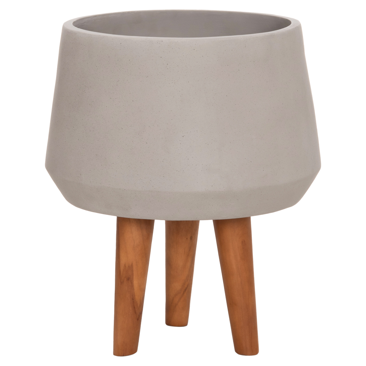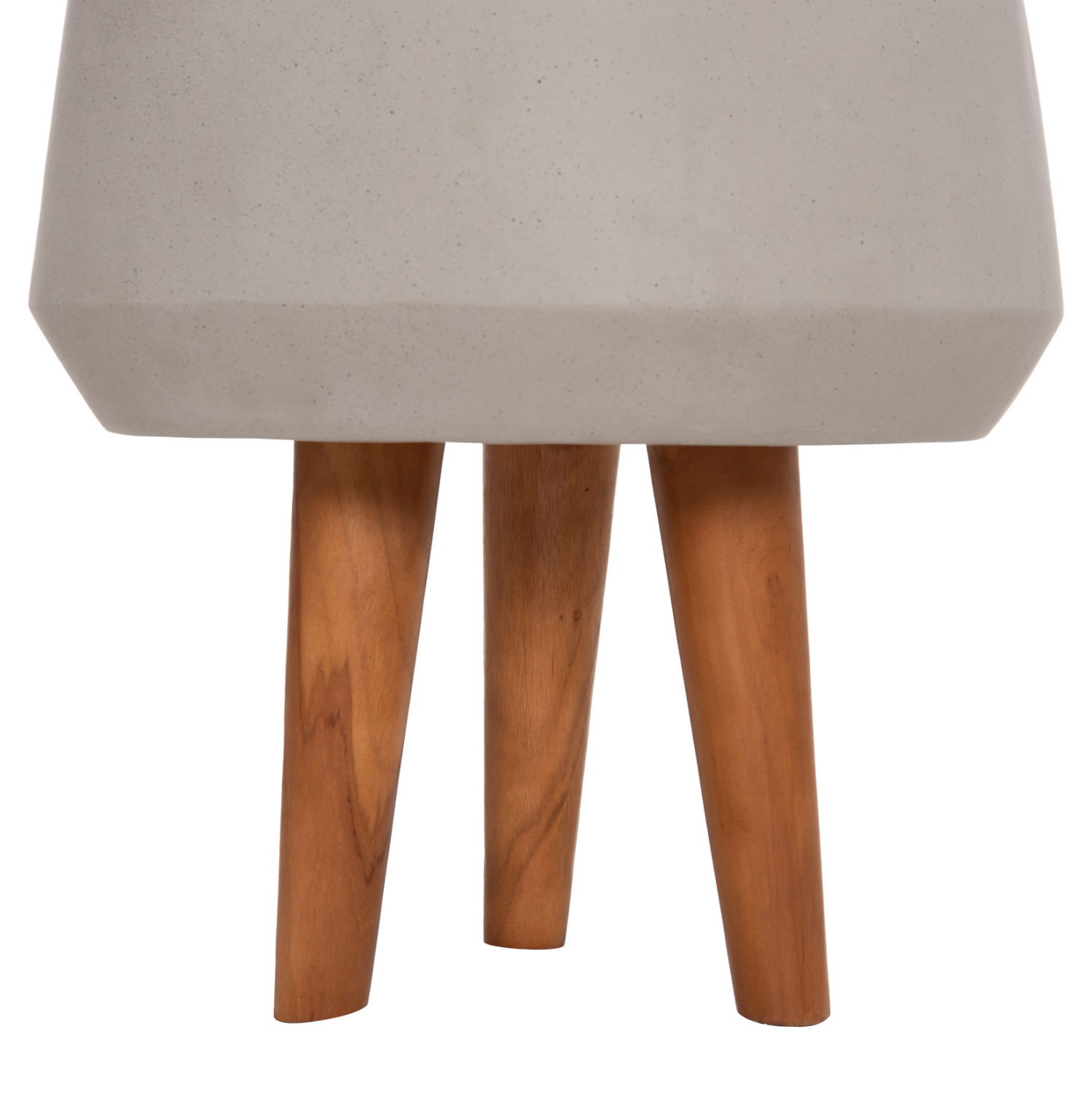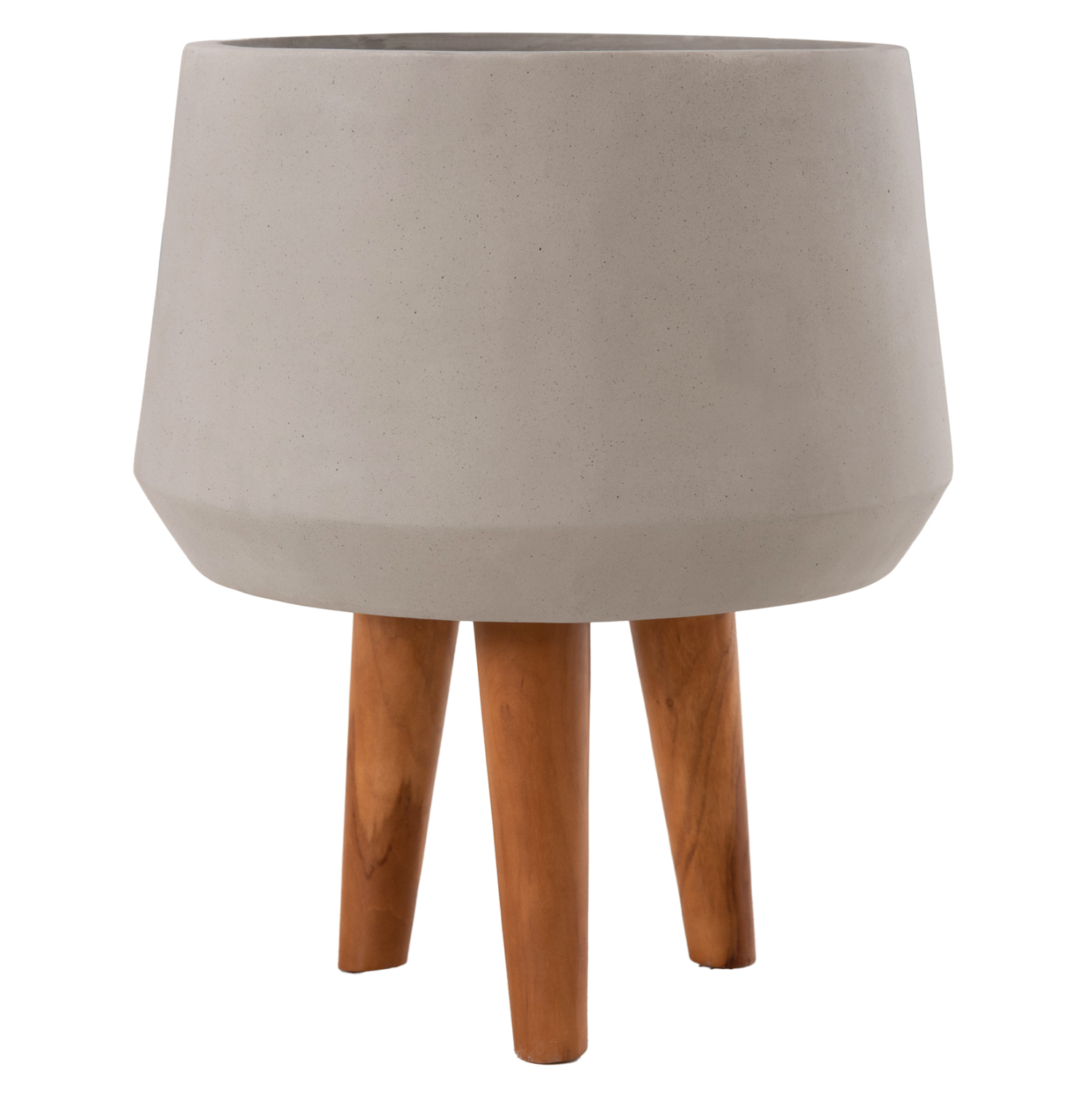 Η φαρδιά και ρηχή γλάστρα εσωτερικού χώρου (κασπό) QUAN είναι κατασκευασμένη από Fiber Cement σε ΓΚΡΙ χρώμα. Το ιδιαίτερο χαρακτηριστικό της είναι ότι συνοδεύεται και τοποθετείται σε μια ψηλή σχετικά τρίποδη βάση από ξύλο teak. Κατά την χρήση της συνιστάται η τοποθέτηση εσωτερικού δοχείου για την σωστή διατήρηση της γλάστρας.