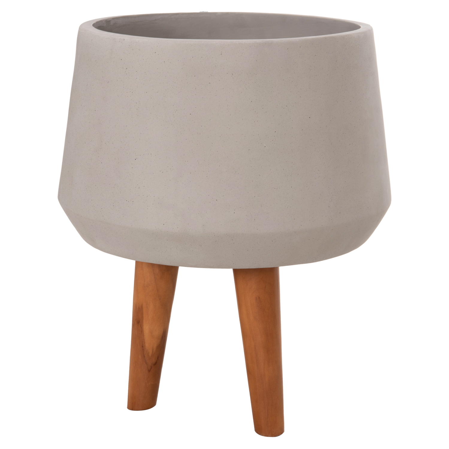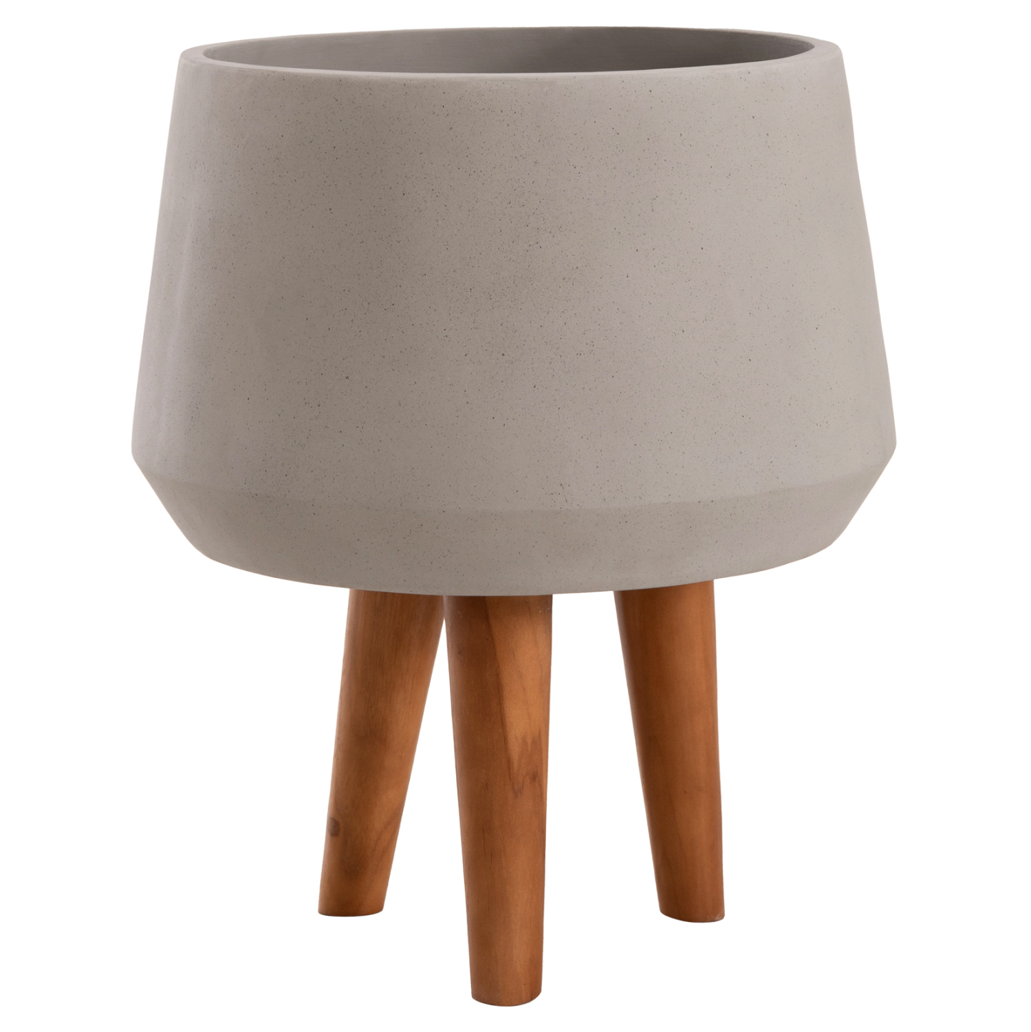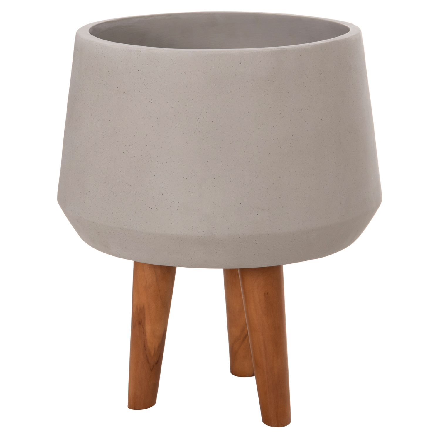Η φαρδιά και ρηχή γλάστρα εσωτερικού χώρου (κασπό) QUAN είναι κατασκευασμένη από Fiber Cement σε ΓΚΡΙ χρώμα. Το ιδιαίτερο χαρακτηριστικό της είναι ότι συνοδεύεται και τοποθετείται σε μια ψηλή σχετικά τρίποδη βάση από ξύλο teak. Κατά την χρήση της συνιστάται η τοποθέτηση εσωτερικού δοχείου για την σωστή διατήρηση της γλάστρας.
